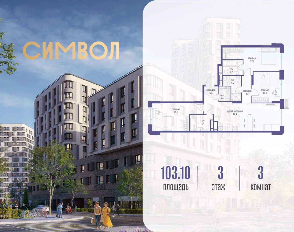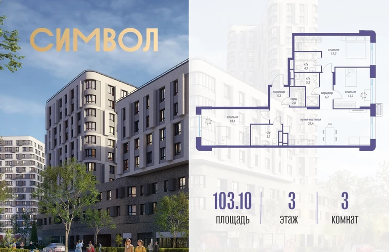 Продается 3-комнатная квартира от застройщика: общая площадь 103.10 м², жилая 48.50 м², кухня 27.40 м², 3-й этаж, жилой квартал «Гордость», корпус 36 (секция 2). Срок сдачи: 2 квартал 2029 года. Позвоните сейчас и забронируйте квартиру! Квартал бизнес-класса СИМВОЛ — это городское пространство нового поколения в историческом районе Лефортово, на границе ЦАО, в 2 км от Садового кольца. Бионическая архитектура СИМВОЛА превратила Лефортово в суперсовременное и модное пространство. Из окон, с балконов и террас просторных квартир СИМВОЛА открываются отличные виды на город и новый парк «Зеленая река», «протекающий» через все кварталы комплекса на 2 км. В квартале уже есть все, что нужно для комфортной жизни: кафе и рестораны, супермаркеты и магазины, медицинские и физкультурно-оздоровительные центры, салоны красоты и барбершопы, аптеки и оптики, химчистки, пункты доставки и другие сервисы — всего более 90 действующих объектов внутриквартальной инфраструктуры. Для юных жителей СИМВОЛА открыты детский сад и инженерный лицей при МГТУ им. Баумана. Особенности квартала: • Свой парк «Зеленая Река» - 10 га зелени и развлечений на любой вкус! • Уникальная для Москвы архитектура - Проект создан архитектурной мастерской ATRIUM по дизайн-коду британских бюро LDA Design и UHA London. • Богатая инфраструктура с детскими садами и лицеем им. Баумана, кафе и ресторанами, супермаркетами и аптеками, зоной для фитнеса, бассейном и мед. центром. • Квартиры с панорамными окнами, террасами, ванными с окнами и каминами редких форматов. • Закрытые безопасные зелёные дворы-парки без машин!О застройщике