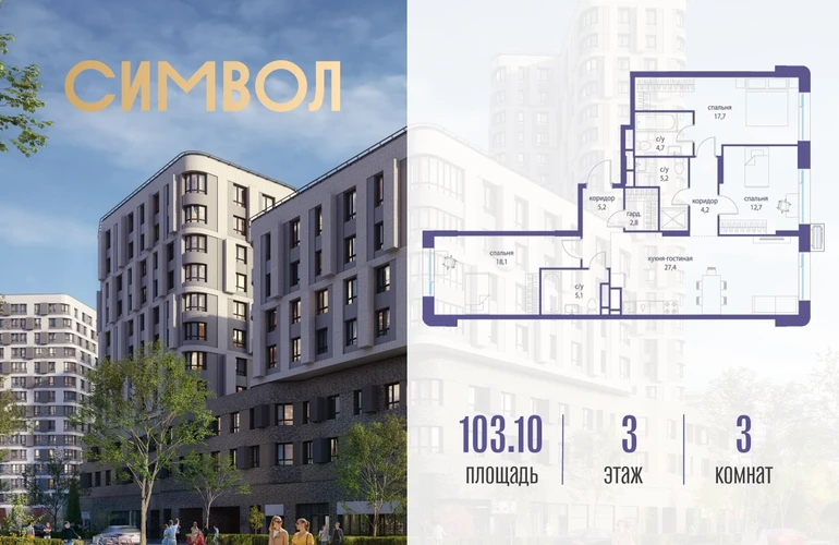 Продается 3-комнатная квартира от застройщика: общая площадь 103.10 м², жилая 48.50 м², кухня 27.40 м², 3-й этаж, жилой квартал «Гордость», корпус 36 (секция 2). Срок сдачи: 2 квартал 2029 года. Позвоните сейчас и забронируйте квартиру! Квартал бизнес-класса СИМВОЛ — это городское пространство нового поколения в историческом районе Лефортово, на границе ЦАО, в 2 км от Садового кольца. Бионическая архитектура СИМВОЛА превратила Лефортово в суперсовременное и модное пространство. Из окон, с балконов и террас просторных квартир СИМВОЛА открываются отличные виды на город и новый парк «Зеленая река», «протекающий» через все кварталы комплекса на 2 км. В квартале уже есть все, что нужно для комфортной жизни: кафе и рестораны, супермаркеты и магазины, медицинские и физкультурно-оздоровительные центры, салоны красоты и барбершопы, аптеки и оптики, химчистки, пункты доставки и другие сервисы — всего более 90 действующих объектов внутриквартальной инфраструктуры. Для юных жителей СИМВОЛА открыты детский сад и инженерный лицей при МГТУ им. Баумана. Особенности квартала: • Свой парк «Зеленая Река» - 10 га зелени и развлечений на любой вкус! • Уникальная для Москвы архитектура - Проект создан архитектурной мастерской ATRIUM по дизайн-коду британских бюро LDA Design и UHA London. • Богатая инфраструктура с детскими садами и лицеем им. Баумана, кафе и ресторанами, супермаркетами и аптеками, зоной для фитнеса, бассейном и мед. центром. • Квартиры с панорамными окнами, террасами, ванными с окнами и каминами редких форматов. • Закрытые безопасные зелёные дворы-парки без машин!О застройщике