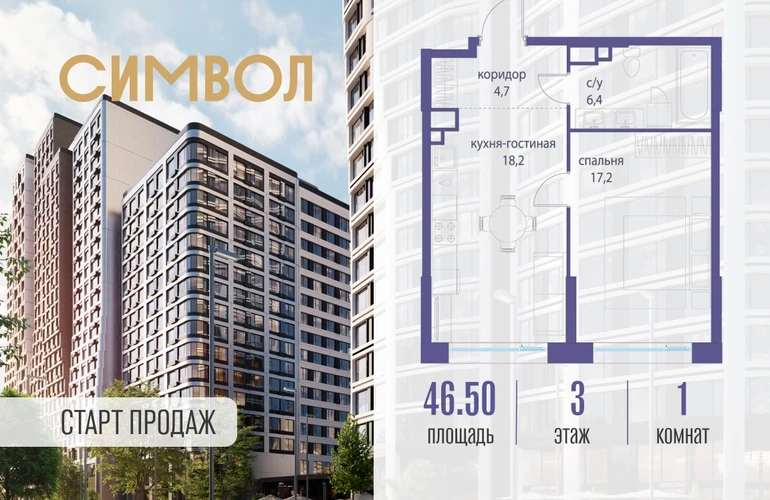 Продается 1-комнатная квартира от застройщика: общая площадь 46.50 м², жилая 17.20 м², кухня 18.20 м², 3-й этаж, жилой квартал «Гордость», корпус 36 (секция 4). Срок сдачи: 2 квартал 2029 года. Позвоните сейчас и забронируйте квартиру! Квартал бизнес-класса СИМВОЛ — это городское пространство нового поколения в историческом районе Лефортово, на границе ЦАО, в 2 км от Садового кольца. Бионическая архитектура СИМВОЛА превратила Лефортово в суперсовременное и модное пространство. Из окон, с балконов и террас просторных квартир СИМВОЛА открываются отличные виды на город и новый парк «Зеленая река», «протекающий» через все кварталы комплекса на 2 км. В квартале уже есть все, что нужно для комфортной жизни: кафе и рестораны, супермаркеты и магазины, медицинские и физкультурно-оздоровительные центры, салоны красоты и барбершопы, аптеки и оптики, химчистки, пункты доставки и другие сервисы — всего более 90 действующих объектов внутриквартальной инфраструктуры. Для юных жителей СИМВОЛА открыты детский сад и инженерный лицей при МГТУ им. Баумана. Особенности квартала: • Свой парк «Зеленая Река» - 10 га зелени и развлечений на любой вкус! • Уникальная для Москвы архитектура - Проект создан архитектурной мастерской ATRIUM по дизайн-коду британских бюро LDA Design и UHA London. • Богатая инфраструктура с детскими садами и лицеем им. Баумана, кафе и ресторанами, супермаркетами и аптеками, зоной для фитнеса, бассейном и мед. центром. • Квартиры с панорамными окнами, террасами, ванными с окнами и каминами редких форматов. • Закрытые безопасные зелёные дворы-парки без машин!О застройщике