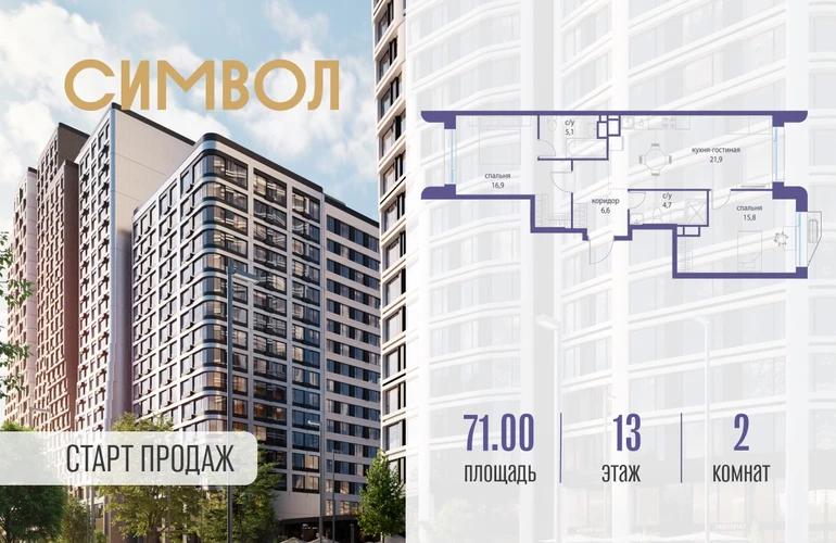 Продается 2-комнатная квартира от застройщика: общая площадь 71.00 м², жилая 32.70 м², кухня 21.90 м², 13-й этаж, жилой квартал «Гордость», корпус 36 (секция 1). Срок сдачи: 2 квартал 2029 года. Позвоните сейчас и забронируйте квартиру! Квартал бизнес-класса СИМВОЛ — это городское пространство нового поколения в историческом районе Лефортово, на границе ЦАО, в 2 км от Садового кольца. Бионическая архитектура СИМВОЛА превратила Лефортово в суперсовременное и модное пространство. Из окон, с балконов и террас просторных квартир СИМВОЛА открываются отличные виды на город и новый парк «Зеленая река», «протекающий» через все кварталы комплекса на 2 км. В квартале уже есть все, что нужно для комфортной жизни: кафе и рестораны, супермаркеты и магазины, медицинские и физкультурно-оздоровительные центры, салоны красоты и барбершопы, аптеки и оптики, химчистки, пункты доставки и другие сервисы — всего более 90 действующих объектов внутриквартальной инфраструктуры. Для юных жителей СИМВОЛА открыты детский сад и инженерный лицей при МГТУ им. Баумана. Особенности квартала: • Свой парк «Зеленая Река» - 10 га зелени и развлечений на любой вкус! • Уникальная для Москвы архитектура - Проект создан архитектурной мастерской ATRIUM по дизайн-коду британских бюро LDA Design и UHA London. • Богатая инфраструктура с детскими садами и лицеем им. Баумана, кафе и ресторанами, супермаркетами и аптеками, зоной для фитнеса, бассейном и мед. центром. • Квартиры с панорамными окнами, террасами, ванными с окнами и каминами редких форматов. • Закрытые безопасные зелёные дворы-парки без машин!О застройщике