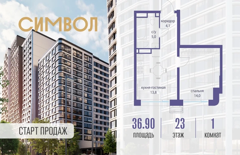 Продается 1-комнатная квартира от застройщика: общая площадь 36.90 м², жилая 14.00 м², кухня 13.80 м², 23-й этаж, жилой квартал «Гордость», корпус 36 (секция 3). Срок сдачи: 2 квартал 2029 года. Позвоните сейчас и забронируйте квартиру! Квартал бизнес-класса СИМВОЛ — это городское пространство нового поколения в историческом районе Лефортово, на границе ЦАО, в 2 км от Садового кольца. Бионическая архитектура СИМВОЛА превратила Лефортово в суперсовременное и модное пространство. Из окон, с балконов и террас просторных квартир СИМВОЛА открываются отличные виды на город и новый парк «Зеленая река», «протекающий» через все кварталы комплекса на 2 км. В квартале уже есть все, что нужно для комфортной жизни: кафе и рестораны, супермаркеты и магазины, медицинские и физкультурно-оздоровительные центры, салоны красоты и барбершопы, аптеки и оптики, химчистки, пункты доставки и другие сервисы — всего более 90 действующих объектов внутриквартальной инфраструктуры. Для юных жителей СИМВОЛА открыты детский сад и инженерный лицей при МГТУ им. Баумана. Особенности квартала: • Свой парк «Зеленая Река» - 10 га зелени и развлечений на любой вкус! • Уникальная для Москвы архитектура - Проект создан архитектурной мастерской ATRIUM по дизайн-коду британских бюро LDA Design и UHA London. • Богатая инфраструктура с детскими садами и лицеем им. Баумана, кафе и ресторанами, супермаркетами и аптеками, зоной для фитнеса, бассейном и мед. центром. • Квартиры с панорамными окнами, террасами, ванными с окнами и каминами редких форматов. • Закрытые безопасные зелёные дворы-парки без машин!О застройщике