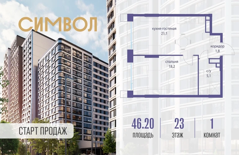 Продается 1-комнатная квартира от застройщика: общая площадь 46.20 м², жилая 18.20 м², кухня 21.10 м², 23-й этаж, жилой квартал «Гордость», корпус 36 (секция 2). Срок сдачи: 2 квартал 2029 года. Позвоните сейчас и забронируйте квартиру! Квартал бизнес-класса СИМВОЛ — это городское пространство нового поколения в историческом районе Лефортово, на границе ЦАО, в 2 км от Садового кольца. Бионическая архитектура СИМВОЛА превратила Лефортово в суперсовременное и модное пространство. Из окон, с балконов и террас просторных квартир СИМВОЛА открываются отличные виды на город и новый парк «Зеленая река», «протекающий» через все кварталы комплекса на 2 км. В квартале уже есть все, что нужно для комфортной жизни: кафе и рестораны, супермаркеты и магазины, медицинские и физкультурно-оздоровительные центры, салоны красоты и барбершопы, аптеки и оптики, химчистки, пункты доставки и другие сервисы — всего более 90 действующих объектов внутриквартальной инфраструктуры. Для юных жителей СИМВОЛА открыты детский сад и инженерный лицей при МГТУ им. Баумана. Особенности квартала: • Свой парк «Зеленая Река» - 10 га зелени и развлечений на любой вкус! • Уникальная для Москвы архитектура - Проект создан архитектурной мастерской ATRIUM по дизайн-коду британских бюро LDA Design и UHA London. • Богатая инфраструктура с детскими садами и лицеем им. Баумана, кафе и ресторанами, супермаркетами и аптеками, зоной для фитнеса, бассейном и мед. центром. • Квартиры с панорамными окнами, террасами, ванными с окнами и каминами редких форматов. • Закрытые безопасные зелёные дворы-парки без машин!О застройщике