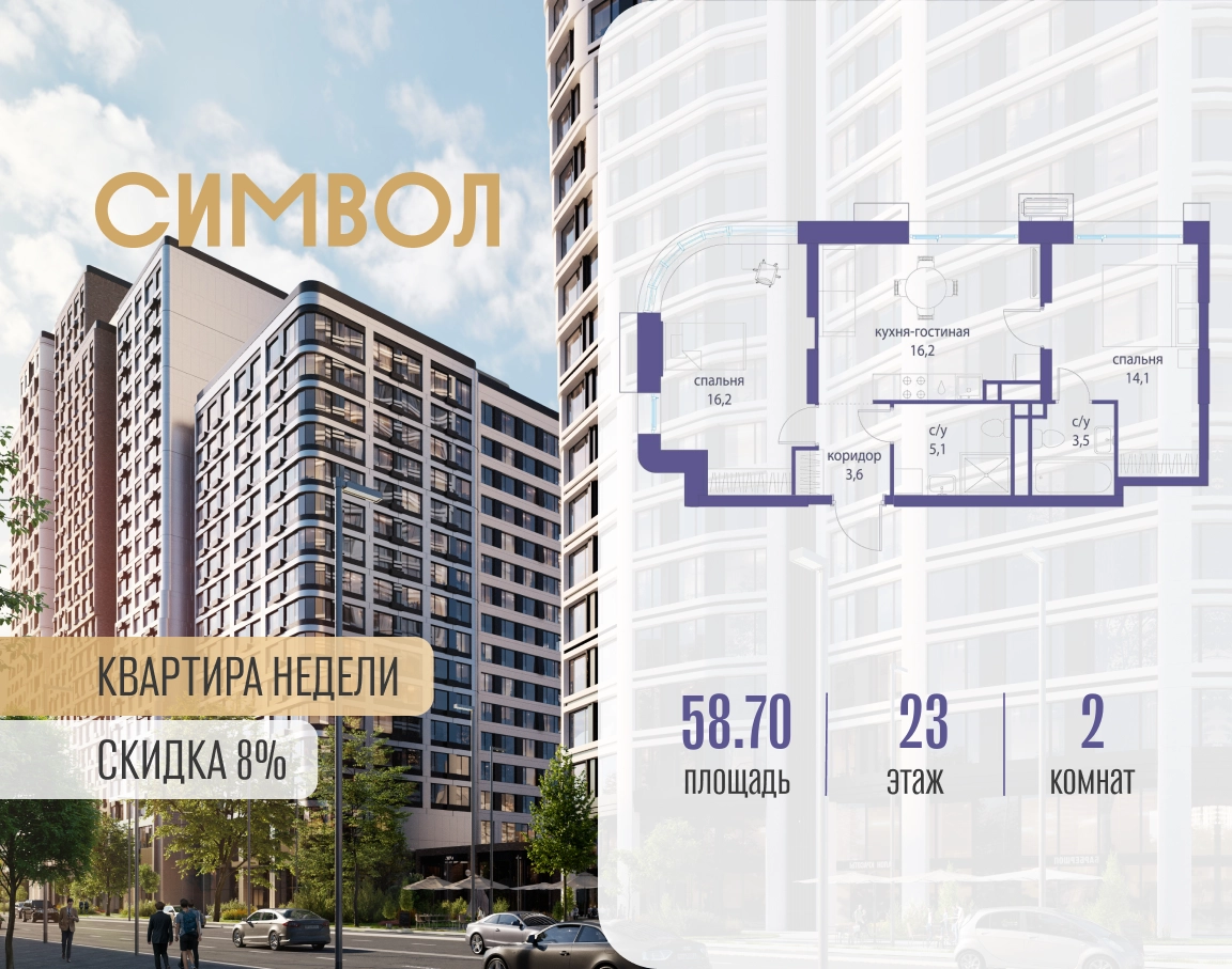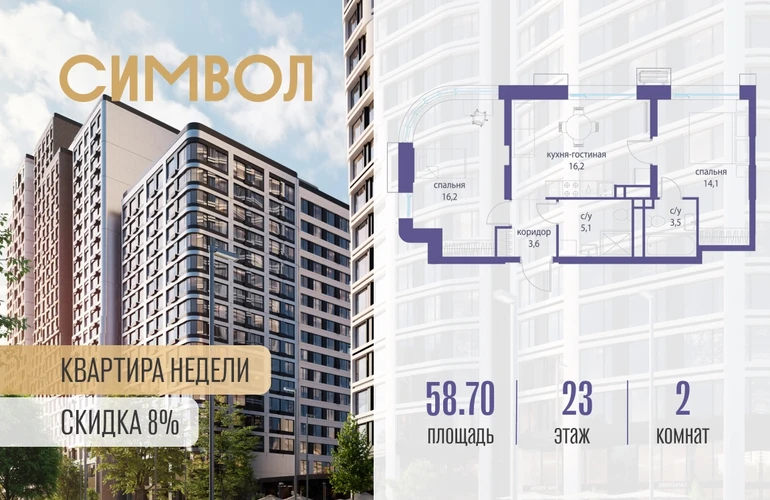 Продается 2-комнатная квартира от застройщика: общая площадь 58.70 м², жилая 30.30 м², кухня 16.20 м², 23-й этаж, жилой квартал «Гордость», корпус 36 (секция 2). Срок сдачи: 2 квартал 2029 года. Позвоните сейчас и забронируйте квартиру! Квартал бизнес-класса СИМВОЛ — это городское пространство нового поколения в историческом районе Лефортово, на границе ЦАО, в 2 км от Садового кольца. Бионическая архитектура СИМВОЛА превратила Лефортово в суперсовременное и модное пространство. Из окон, с балконов и террас просторных квартир СИМВОЛА открываются отличные виды на город и новый парк «Зеленая река», «протекающий» через все кварталы комплекса на 2 км. В квартале уже есть все, что нужно для комфортной жизни: кафе и рестораны, супермаркеты и магазины, медицинские и физкультурно-оздоровительные центры, салоны красоты и барбершопы, аптеки и оптики, химчистки, пункты доставки и другие сервисы — всего более 90 действующих объектов внутриквартальной инфраструктуры. Для юных жителей СИМВОЛА открыты детский сад и инженерный лицей при МГТУ им. Баумана. Особенности квартала: • Свой парк «Зеленая Река» - 10 га зелени и развлечений на любой вкус! • Уникальная для Москвы архитектура - Проект создан архитектурной мастерской ATRIUM по дизайн-коду британских бюро LDA Design и UHA London. • Богатая инфраструктура с детскими садами и лицеем им. Баумана, кафе и ресторанами, супермаркетами и аптеками, зоной для фитнеса, бассейном и мед. центром. • Квартиры с панорамными окнами, террасами, ванными с окнами и каминами редких форматов. • Закрытые безопасные зелёные дворы-парки без машин!О застройщике