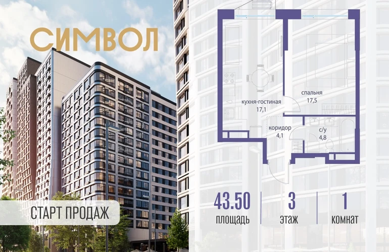Продается 1-комнатная квартира от застройщика: общая площадь 43.50 м², жилая 17.50 м², кухня 17.10 м², 3-й этаж, жилой квартал «Гордость», корпус 36 (секция 3). Срок сдачи: 2 квартал 2029 года. Позвоните сейчас и забронируйте квартиру! Квартал бизнес-класса СИМВОЛ — это городское пространство нового поколения в историческом районе Лефортово, на границе ЦАО, в 2 км от Садового кольца. Бионическая архитектура СИМВОЛА превратила Лефортово в суперсовременное и модное пространство. Из окон, с балконов и террас просторных квартир СИМВОЛА открываются отличные виды на город и новый парк «Зеленая река», «протекающий» через все кварталы комплекса на 2 км. В квартале уже есть все, что нужно для комфортной жизни: кафе и рестораны, супермаркеты и магазины, медицинские и физкультурно-оздоровительные центры, салоны красоты и барбершопы, аптеки и оптики, химчистки, пункты доставки и другие сервисы — всего более 90 действующих объектов внутриквартальной инфраструктуры. Для юных жителей СИМВОЛА открыты детский сад и инженерный лицей при МГТУ им. Баумана. Особенности квартала: • Свой парк «Зеленая Река» - 10 га зелени и развлечений на любой вкус! • Уникальная для Москвы архитектура - Проект создан архитектурной мастерской ATRIUM по дизайн-коду британских бюро LDA Design и UHA London. • Богатая инфраструктура с детскими садами и лицеем им. Баумана, кафе и ресторанами, супермаркетами и аптеками, зоной для фитнеса, бассейном и мед. центром. • Квартиры с панорамными окнами, террасами, ванными с окнами и каминами редких форматов. • Закрытые безопасные зелёные дворы-парки без машин!О застройщике