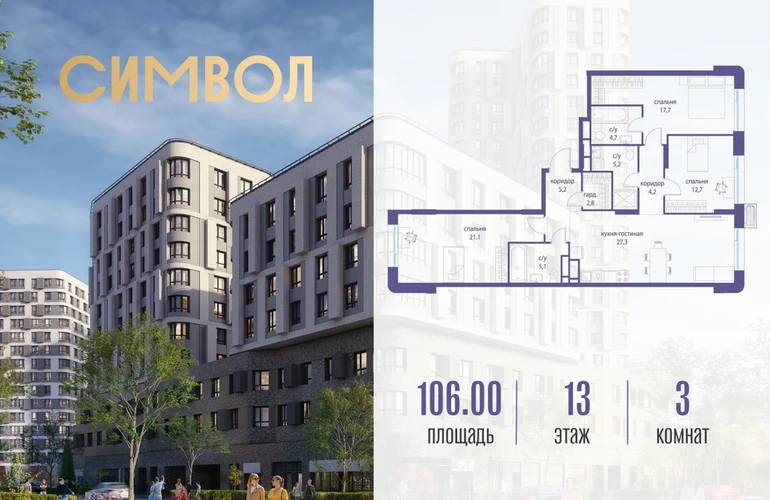 Продается 3-комнатная квартира от застройщика: общая площадь 106.00 м², жилая 51.50 м², кухня 27.30 м², 13-й этаж, жилой квартал «Гордость», корпус 36 (секция 2). Срок сдачи: 2 квартал 2029 года. Позвоните сейчас и забронируйте квартиру! Квартал бизнес-класса СИМВОЛ — это городское пространство нового поколения в историческом районе Лефортово, на границе ЦАО, в 2 км от Садового кольца. Бионическая архитектура СИМВОЛА превратила Лефортово в суперсовременное и модное пространство. Из окон, с балконов и террас просторных квартир СИМВОЛА открываются отличные виды на город и новый парк «Зеленая река», «протекающий» через все кварталы комплекса на 2 км. В квартале уже есть все, что нужно для комфортной жизни: кафе и рестораны, супермаркеты и магазины, медицинские и физкультурно-оздоровительные центры, салоны красоты и барбершопы, аптеки и оптики, химчистки, пункты доставки и другие сервисы — всего более 90 действующих объектов внутриквартальной инфраструктуры. Для юных жителей СИМВОЛА открыты детский сад и инженерный лицей при МГТУ им. Баумана. Особенности квартала: • Свой парк «Зеленая Река» - 10 га зелени и развлечений на любой вкус! • Уникальная для Москвы архитектура - Проект создан архитектурной мастерской ATRIUM по дизайн-коду британских бюро LDA Design и UHA London. • Богатая инфраструктура с детскими садами и лицеем им. Баумана, кафе и ресторанами, супермаркетами и аптеками, зоной для фитнеса, бассейном и мед. центром. • Квартиры с панорамными окнами, террасами, ванными с окнами и каминами редких форматов. • Закрытые безопасные зелёные дворы-парки без машин!