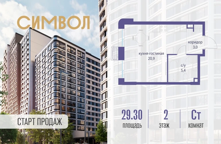 Продается квартира-студия от застройщика: общая площадь 29.30 м², жилая 10.00 м², кухня 10.90 м², 2-й этаж, жилой квартал «Гордость», корпус 36 (секция 5). Срок сдачи: 2 квартал 2029 года. Позвоните сейчас и забронируйте квартиру! Квартал бизнес-класса СИМВОЛ — это городское пространство нового поколения в историческом районе Лефортово, на границе ЦАО, в 2 км от Садового кольца. Бионическая архитектура СИМВОЛА превратила Лефортово в суперсовременное и модное пространство. Из окон, с балконов и террас просторных квартир СИМВОЛА открываются отличные виды на город и новый парк «Зеленая река», «протекающий» через все кварталы комплекса на 2 км. В квартале уже есть все, что нужно для комфортной жизни: кафе и рестораны, супермаркеты и магазины, медицинские и физкультурно-оздоровительные центры, салоны красоты и барбершопы, аптеки и оптики, химчистки, пункты доставки и другие сервисы — всего более 90 действующих объектов внутриквартальной инфраструктуры. Для юных жителей СИМВОЛА открыты детский сад и инженерный лицей при МГТУ им. Баумана. Особенности квартала: • Свой парк «Зеленая Река» - 10 га зелени и развлечений на любой вкус! • Уникальная для Москвы архитектура - Проект создан архитектурной мастерской ATRIUM по дизайн-коду британских бюро LDA Design и UHA London. • Богатая инфраструктура с детскими садами и лицеем им. Баумана, кафе и ресторанами, супермаркетами и аптеками, зоной для фитнеса, бассейном и мед. центром. • Квартиры с панорамными окнами, террасами, ванными с окнами и каминами редких форматов. • Закрытые безопасные зелёные дворы-парки без машин!О застройщике