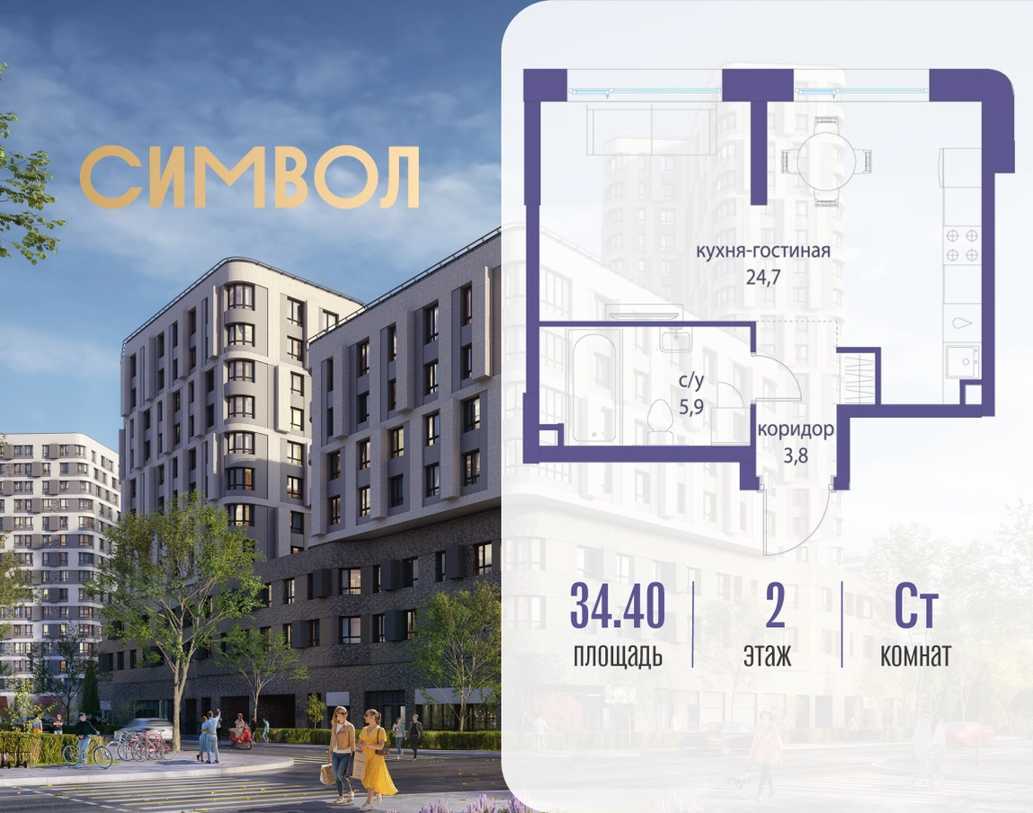 Продается квартира-студия от застройщика: общая площадь 34.40 м², жилая 10.00 м², кухня 14.70 м², 2-й этаж, жилой квартал «Гордость», корпус 36 (секция 3). Срок сдачи: 2 квартал 2029 года. Позвоните сейчас и забронируйте квартиру! Квартал бизнес-класса СИМВОЛ — это городское пространство нового поколения в историческом районе Лефортово, на границе ЦАО, в 2 км от Садового кольца. Бионическая архитектура СИМВОЛА превратила Лефортово в суперсовременное и модное пространство. Из окон, с балконов и террас просторных квартир СИМВОЛА открываются отличные виды на город и новый парк «Зеленая река», «протекающий» через все кварталы комплекса на 2 км. В квартале уже есть все, что нужно для комфортной жизни: кафе и рестораны, супермаркеты и магазины, медицинские и физкультурно-оздоровительные центры, салоны красоты и барбершопы, аптеки и оптики, химчистки, пункты доставки и другие сервисы — всего более 90 действующих объектов внутриквартальной инфраструктуры. Для юных жителей СИМВОЛА открыты детский сад и инженерный лицей при МГТУ им. Баумана. Особенности квартала: • Свой парк «Зеленая Река» - 10 га зелени и развлечений на любой вкус! • Уникальная для Москвы архитектура - Проект создан архитектурной мастерской ATRIUM по дизайн-коду британских бюро LDA Design и UHA London. • Богатая инфраструктура с детскими садами и лицеем им. Баумана, кафе и ресторанами, супермаркетами и аптеками, зоной для фитнеса, бассейном и мед. центром. • Квартиры с панорамными окнами, террасами, ванными с окнами и каминами редких форматов. • Закрытые безопасные зелёные дворы-парки без машин!