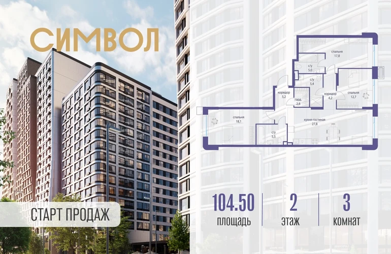 Продается 3-комнатная квартира от застройщика: общая площадь 104.50 м², жилая 48.60 м², кухня 27.80 м², 2-й этаж, жилой квартал «Гордость», корпус 36 (секция 2). Срок сдачи: 2 квартал 2029 года. Позвоните сейчас и забронируйте квартиру! Квартал бизнес-класса СИМВОЛ — это городское пространство нового поколения в историческом районе Лефортово, на границе ЦАО, в 2 км от Садового кольца. Бионическая архитектура СИМВОЛА превратила Лефортово в суперсовременное и модное пространство. Из окон, с балконов и террас просторных квартир СИМВОЛА открываются отличные виды на город и новый парк «Зеленая река», «протекающий» через все кварталы комплекса на 2 км. В квартале уже есть все, что нужно для комфортной жизни: кафе и рестораны, супермаркеты и магазины, медицинские и физкультурно-оздоровительные центры, салоны красоты и барбершопы, аптеки и оптики, химчистки, пункты доставки и другие сервисы — всего более 90 действующих объектов внутриквартальной инфраструктуры. Для юных жителей СИМВОЛА открыты детский сад и инженерный лицей при МГТУ им. Баумана. Особенности квартала: • Свой парк «Зеленая Река» - 10 га зелени и развлечений на любой вкус! • Уникальная для Москвы архитектура - Проект создан архитектурной мастерской ATRIUM по дизайн-коду британских бюро LDA Design и UHA London. • Богатая инфраструктура с детскими садами и лицеем им. Баумана, кафе и ресторанами, супермаркетами и аптеками, зоной для фитнеса, бассейном и мед. центром. • Квартиры с панорамными окнами, террасами, ванными с окнами и каминами редких форматов. • Закрытые безопасные зелёные дворы-парки без машин!О застройщике