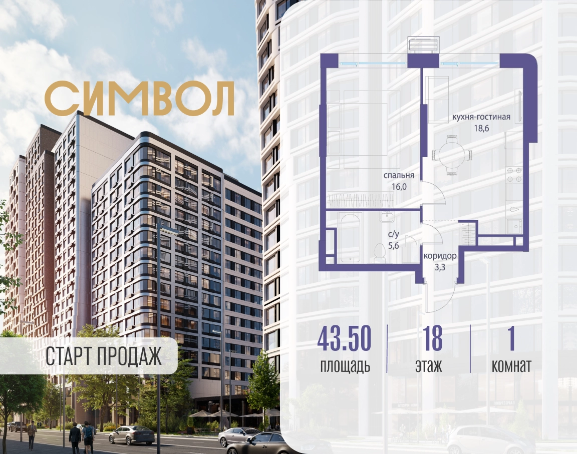 Продается 1-комнатная квартира от застройщика: общая площадь 43.50 м², жилая 16.00 м², кухня 18.60 м², 18-й этаж, жилой квартал «Гордость», корпус 36 (секция 3). Срок сдачи: 2 квартал 2029 года. Позвоните сейчас и забронируйте квартиру! Квартал бизнес-класса СИМВОЛ — это городское пространство нового поколения в историческом районе Лефортово, на границе ЦАО, в 2 км от Садового кольца. Бионическая архитектура СИМВОЛА превратила Лефортово в суперсовременное и модное пространство. Из окон, с балконов и террас просторных квартир СИМВОЛА открываются отличные виды на город и новый парк «Зеленая река», «протекающий» через все кварталы комплекса на 2 км. В квартале уже есть все, что нужно для комфортной жизни: кафе и рестораны, супермаркеты и магазины, медицинские и физкультурно-оздоровительные центры, салоны красоты и барбершопы, аптеки и оптики, химчистки, пункты доставки и другие сервисы — всего более 90 действующих объектов внутриквартальной инфраструктуры. Для юных жителей СИМВОЛА открыты детский сад и инженерный лицей при МГТУ им. Баумана. Особенности квартала: • Свой парк «Зеленая Река» - 10 га зелени и развлечений на любой вкус! • Уникальная для Москвы архитектура - Проект создан архитектурной мастерской ATRIUM по дизайн-коду британских бюро LDA Design и UHA London. • Богатая инфраструктура с детскими садами и лицеем им. Баумана, кафе и ресторанами, супермаркетами и аптеками, зоной для фитнеса, бассейном и мед. центром. • Квартиры с панорамными окнами, террасами, ванными с окнами и каминами редких форматов. • Закрытые безопасные зелёные дворы-парки без машин!О застройщике
