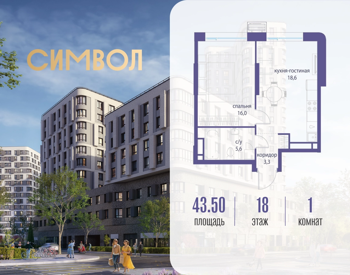 Продается 1-комнатная квартира от застройщика: общая площадь 43.50 м², жилая 16.00 м², кухня 18.60 м², 18-й этаж, жилой квартал «Гордость», корпус 36 (секция 3). Срок сдачи: 2 квартал 2029 года. Позвоните сейчас и забронируйте квартиру! Квартал бизнес-класса СИМВОЛ — это городское пространство нового поколения в историческом районе Лефортово, на границе ЦАО, в 2 км от Садового кольца. Бионическая архитектура СИМВОЛА превратила Лефортово в суперсовременное и модное пространство. Из окон, с балконов и террас просторных квартир СИМВОЛА открываются отличные виды на город и новый парк «Зеленая река», «протекающий» через все кварталы комплекса на 2 км. В квартале уже есть все, что нужно для комфортной жизни: кафе и рестораны, супермаркеты и магазины, медицинские и физкультурно-оздоровительные центры, салоны красоты и барбершопы, аптеки и оптики, химчистки, пункты доставки и другие сервисы — всего более 90 действующих объектов внутриквартальной инфраструктуры. Для юных жителей СИМВОЛА открыты детский сад и инженерный лицей при МГТУ им. Баумана. Особенности квартала: • Свой парк «Зеленая Река» - 10 га зелени и развлечений на любой вкус! • Уникальная для Москвы архитектура - Проект создан архитектурной мастерской ATRIUM по дизайн-коду британских бюро LDA Design и UHA London. • Богатая инфраструктура с детскими садами и лицеем им. Баумана, кафе и ресторанами, супермаркетами и аптеками, зоной для фитнеса, бассейном и мед. центром. • Квартиры с панорамными окнами, террасами, ванными с окнами и каминами редких форматов. • Закрытые безопасные зелёные дворы-парки без машин!О застройщике
