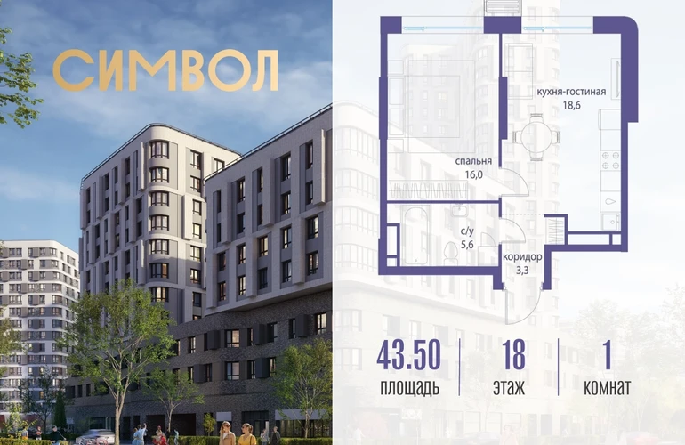 Продается 1-комнатная квартира от застройщика: общая площадь 43.50 м², жилая 16.00 м², кухня 18.60 м², 18-й этаж, жилой квартал «Гордость», корпус 36 (секция 3). Срок сдачи: 2 квартал 2029 года. Позвоните сейчас и забронируйте квартиру! Квартал бизнес-класса СИМВОЛ — это городское пространство нового поколения в историческом районе Лефортово, на границе ЦАО, в 2 км от Садового кольца. Бионическая архитектура СИМВОЛА превратила Лефортово в суперсовременное и модное пространство. Из окон, с балконов и террас просторных квартир СИМВОЛА открываются отличные виды на город и новый парк «Зеленая река», «протекающий» через все кварталы комплекса на 2 км. В квартале уже есть все, что нужно для комфортной жизни: кафе и рестораны, супермаркеты и магазины, медицинские и физкультурно-оздоровительные центры, салоны красоты и барбершопы, аптеки и оптики, химчистки, пункты доставки и другие сервисы — всего более 90 действующих объектов внутриквартальной инфраструктуры. Для юных жителей СИМВОЛА открыты детский сад и инженерный лицей при МГТУ им. Баумана. Особенности квартала: • Свой парк «Зеленая Река» - 10 га зелени и развлечений на любой вкус! • Уникальная для Москвы архитектура - Проект создан архитектурной мастерской ATRIUM по дизайн-коду британских бюро LDA Design и UHA London. • Богатая инфраструктура с детскими садами и лицеем им. Баумана, кафе и ресторанами, супермаркетами и аптеками, зоной для фитнеса, бассейном и мед. центром. • Квартиры с панорамными окнами, террасами, ванными с окнами и каминами редких форматов. • Закрытые безопасные зелёные дворы-парки без машин!О застройщике