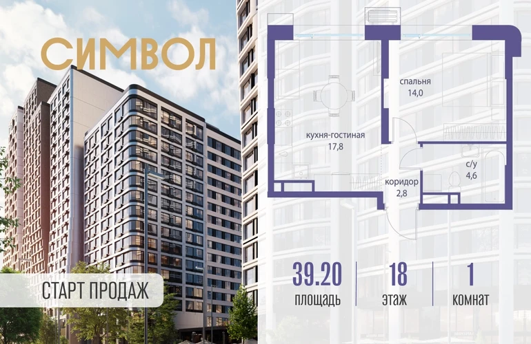 Продается 1-комнатная квартира от застройщика: общая площадь 39.20 м², жилая 14.00 м², кухня 17.80 м², 18-й этаж, жилой квартал «Гордость», корпус 36 (секция 2). Срок сдачи: 2 квартал 2029 года. Позвоните сейчас и забронируйте квартиру! Квартал бизнес-класса СИМВОЛ — это городское пространство нового поколения в историческом районе Лефортово, на границе ЦАО, в 2 км от Садового кольца. Бионическая архитектура СИМВОЛА превратила Лефортово в суперсовременное и модное пространство. Из окон, с балконов и террас просторных квартир СИМВОЛА открываются отличные виды на город и новый парк «Зеленая река», «протекающий» через все кварталы комплекса на 2 км. В квартале уже есть все, что нужно для комфортной жизни: кафе и рестораны, супермаркеты и магазины, медицинские и физкультурно-оздоровительные центры, салоны красоты и барбершопы, аптеки и оптики, химчистки, пункты доставки и другие сервисы — всего более 90 действующих объектов внутриквартальной инфраструктуры. Для юных жителей СИМВОЛА открыты детский сад и инженерный лицей при МГТУ им. Баумана. Особенности квартала: • Свой парк «Зеленая Река» - 10 га зелени и развлечений на любой вкус! • Уникальная для Москвы архитектура - Проект создан архитектурной мастерской ATRIUM по дизайн-коду британских бюро LDA Design и UHA London. • Богатая инфраструктура с детскими садами и лицеем им. Баумана, кафе и ресторанами, супермаркетами и аптеками, зоной для фитнеса, бассейном и мед. центром. • Квартиры с панорамными окнами, террасами, ванными с окнами и каминами редких форматов. • Закрытые безопасные зелёные дворы-парки без машин!О застройщике