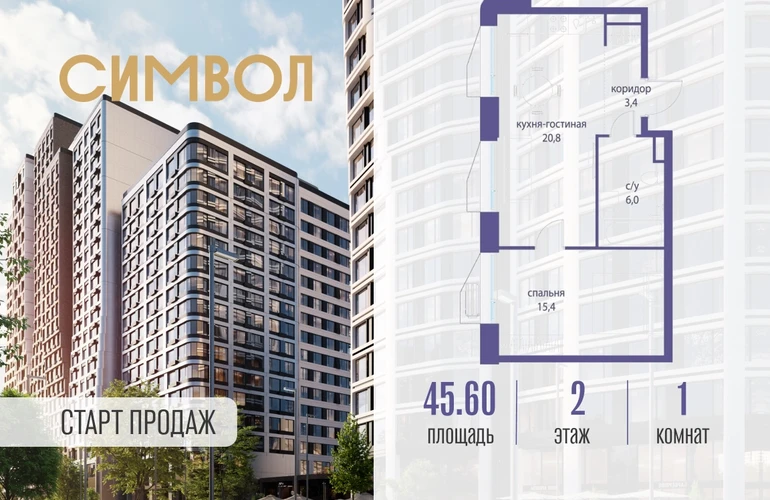 Продается 1-комнатная квартира от застройщика: общая площадь 45.60 м², жилая 15.40 м², кухня 20.80 м², 2-й этаж, жилой квартал «Гордость», корпус 36 (секция 1). Срок сдачи: 2 квартал 2029 года. Позвоните сейчас и забронируйте квартиру! Квартал бизнес-класса СИМВОЛ — это городское пространство нового поколения в историческом районе Лефортово, на границе ЦАО, в 2 км от Садового кольца. Бионическая архитектура СИМВОЛА превратила Лефортово в суперсовременное и модное пространство. Из окон, с балконов и террас просторных квартир СИМВОЛА открываются отличные виды на город и новый парк «Зеленая река», «протекающий» через все кварталы комплекса на 2 км. В квартале уже есть все, что нужно для комфортной жизни: кафе и рестораны, супермаркеты и магазины, медицинские и физкультурно-оздоровительные центры, салоны красоты и барбершопы, аптеки и оптики, химчистки, пункты доставки и другие сервисы — всего более 90 действующих объектов внутриквартальной инфраструктуры. Для юных жителей СИМВОЛА открыты детский сад и инженерный лицей при МГТУ им. Баумана. Особенности квартала: • Свой парк «Зеленая Река» - 10 га зелени и развлечений на любой вкус! • Уникальная для Москвы архитектура - Проект создан архитектурной мастерской ATRIUM по дизайн-коду британских бюро LDA Design и UHA London. • Богатая инфраструктура с детскими садами и лицеем им. Баумана, кафе и ресторанами, супермаркетами и аптеками, зоной для фитнеса, бассейном и мед. центром. • Квартиры с панорамными окнами, террасами, ванными с окнами и каминами редких форматов. • Закрытые безопасные зелёные дворы-парки без машин!О застройщике