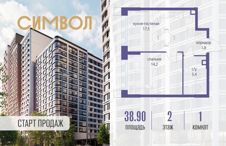 Продается 1-комнатная квартира от застройщика: общая площадь 38.90 м², жилая 14.20 м², кухня 17.50 м², 2-й этаж, жилой квартал «Гордость», корпус 36 (секция 2). Срок сдачи: 2 квартал 2029 года. Позвоните сейчас и забронируйте квартиру! Квартал бизнес-класса СИМВОЛ — это городское пространство нового поколения в историческом районе Лефортово, на границе ЦАО, в 2 км от Садового кольца. Бионическая архитектура СИМВОЛА превратила Лефортово в суперсовременное и модное пространство. Из окон, с балконов и террас просторных квартир СИМВОЛА открываются отличные виды на город и новый парк «Зеленая река», «протекающий» через все кварталы комплекса на 2 км. В квартале уже есть все, что нужно для комфортной жизни: кафе и рестораны, супермаркеты и магазины, медицинские и физкультурно-оздоровительные центры, салоны красоты и барбершопы, аптеки и оптики, химчистки, пункты доставки и другие сервисы — всего более 90 действующих объектов внутриквартальной инфраструктуры. Для юных жителей СИМВОЛА открыты детский сад и инженерный лицей при МГТУ им. Баумана. Особенности квартала: • Свой парк «Зеленая Река» - 10 га зелени и развлечений на любой вкус! • Уникальная для Москвы архитектура - Проект создан архитектурной мастерской ATRIUM по дизайн-коду британских бюро LDA Design и UHA London. • Богатая инфраструктура с детскими садами и лицеем им. Баумана, кафе и ресторанами, супермаркетами и аптеками, зоной для фитнеса, бассейном и мед. центром. • Квартиры с панорамными окнами, террасами, ванными с окнами и каминами редких форматов. • Закрытые безопасные зелёные дворы-парки без машин!О застройщике