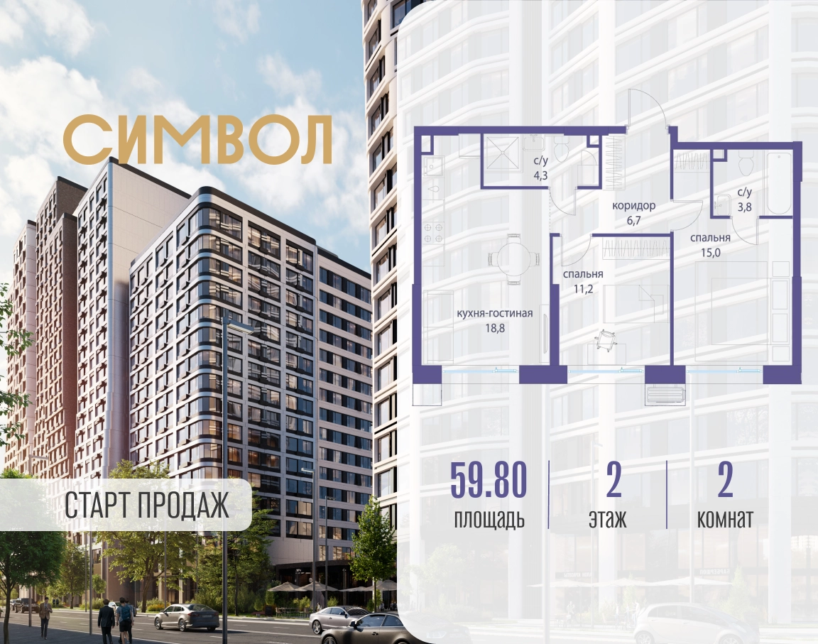 Продается 2-комнатная квартира от застройщика: общая площадь 59.80 м², жилая 26.20 м², кухня 18.80 м², 2-й этаж, жилой квартал «Гордость», корпус 36 (секция 5). Срок сдачи: 2 квартал 2029 года. Позвоните сейчас и забронируйте квартиру! Квартал бизнес-класса СИМВОЛ — это городское пространство нового поколения в историческом районе Лефортово, на границе ЦАО, в 2 км от Садового кольца. Бионическая архитектура СИМВОЛА превратила Лефортово в суперсовременное и модное пространство. Из окон, с балконов и террас просторных квартир СИМВОЛА открываются отличные виды на город и новый парк «Зеленая река», «протекающий» через все кварталы комплекса на 2 км. В квартале уже есть все, что нужно для комфортной жизни: кафе и рестораны, супермаркеты и магазины, медицинские и физкультурно-оздоровительные центры, салоны красоты и барбершопы, аптеки и оптики, химчистки, пункты доставки и другие сервисы — всего более 90 действующих объектов внутриквартальной инфраструктуры. Для юных жителей СИМВОЛА открыты детский сад и инженерный лицей при МГТУ им. Баумана. Особенности квартала: • Свой парк «Зеленая Река» - 10 га зелени и развлечений на любой вкус! • Уникальная для Москвы архитектура - Проект создан архитектурной мастерской ATRIUM по дизайн-коду британских бюро LDA Design и UHA London. • Богатая инфраструктура с детскими садами и лицеем им. Баумана, кафе и ресторанами, супермаркетами и аптеками, зоной для фитнеса, бассейном и мед. центром. • Квартиры с панорамными окнами, террасами, ванными с окнами и каминами редких форматов. • Закрытые безопасные зелёные дворы-парки без машин!