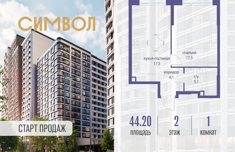 Продается 1-комнатная квартира от застройщика: общая площадь 44.20 м², жилая 17.50 м², кухня 17.50 м², 2-й этаж, жилой квартал «Гордость», корпус 36 (секция 3). Срок сдачи: 2 квартал 2029 года. Позвоните сейчас и забронируйте квартиру! Квартал бизнес-класса СИМВОЛ — это городское пространство нового поколения в историческом районе Лефортово, на границе ЦАО, в 2 км от Садового кольца. Бионическая архитектура СИМВОЛА превратила Лефортово в суперсовременное и модное пространство. Из окон, с балконов и террас просторных квартир СИМВОЛА открываются отличные виды на город и новый парк «Зеленая река», «протекающий» через все кварталы комплекса на 2 км. В квартале уже есть все, что нужно для комфортной жизни: кафе и рестораны, супермаркеты и магазины, медицинские и физкультурно-оздоровительные центры, салоны красоты и барбершопы, аптеки и оптики, химчистки, пункты доставки и другие сервисы — всего более 90 действующих объектов внутриквартальной инфраструктуры. Для юных жителей СИМВОЛА открыты детский сад и инженерный лицей при МГТУ им. Баумана. Особенности квартала: • Свой парк «Зеленая Река» - 10 га зелени и развлечений на любой вкус! • Уникальная для Москвы архитектура - Проект создан архитектурной мастерской ATRIUM по дизайн-коду британских бюро LDA Design и UHA London. • Богатая инфраструктура с детскими садами и лицеем им. Баумана, кафе и ресторанами, супермаркетами и аптеками, зоной для фитнеса, бассейном и мед. центром. • Квартиры с панорамными окнами, террасами, ванными с окнами и каминами редких форматов. • Закрытые безопасные зелёные дворы-парки без машин!О застройщике