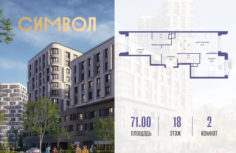 Продается 2-комнатная квартира от застройщика: общая площадь 71.00 м², жилая 32.70 м², кухня 21.90 м², 18-й этаж, жилой квартал «Гордость», корпус 36 (секция 1). Срок сдачи: 2 квартал 2029 года. Позвоните сейчас и забронируйте квартиру! Квартал бизнес-класса СИМВОЛ — это городское пространство нового поколения в историческом районе Лефортово, на границе ЦАО, в 2 км от Садового кольца. Бионическая архитектура СИМВОЛА превратила Лефортово в суперсовременное и модное пространство. Из окон, с балконов и террас просторных квартир СИМВОЛА открываются отличные виды на город и новый парк «Зеленая река», «протекающий» через все кварталы комплекса на 2 км. В квартале уже есть все, что нужно для комфортной жизни: кафе и рестораны, супермаркеты и магазины, медицинские и физкультурно-оздоровительные центры, салоны красоты и барбершопы, аптеки и оптики, химчистки, пункты доставки и другие сервисы — всего более 90 действующих объектов внутриквартальной инфраструктуры. Для юных жителей СИМВОЛА открыты детский сад и инженерный лицей при МГТУ им. Баумана. Особенности квартала: • Свой парк «Зеленая Река» - 10 га зелени и развлечений на любой вкус! • Уникальная для Москвы архитектура - Проект создан архитектурной мастерской ATRIUM по дизайн-коду британских бюро LDA Design и UHA London. • Богатая инфраструктура с детскими садами и лицеем им. Баумана, кафе и ресторанами, супермаркетами и аптеками, зоной для фитнеса, бассейном и мед. центром. • Квартиры с панорамными окнами, террасами, ванными с окнами и каминами редких форматов. • Закрытые безопасные зелёные дворы-парки без машин!О застройщике