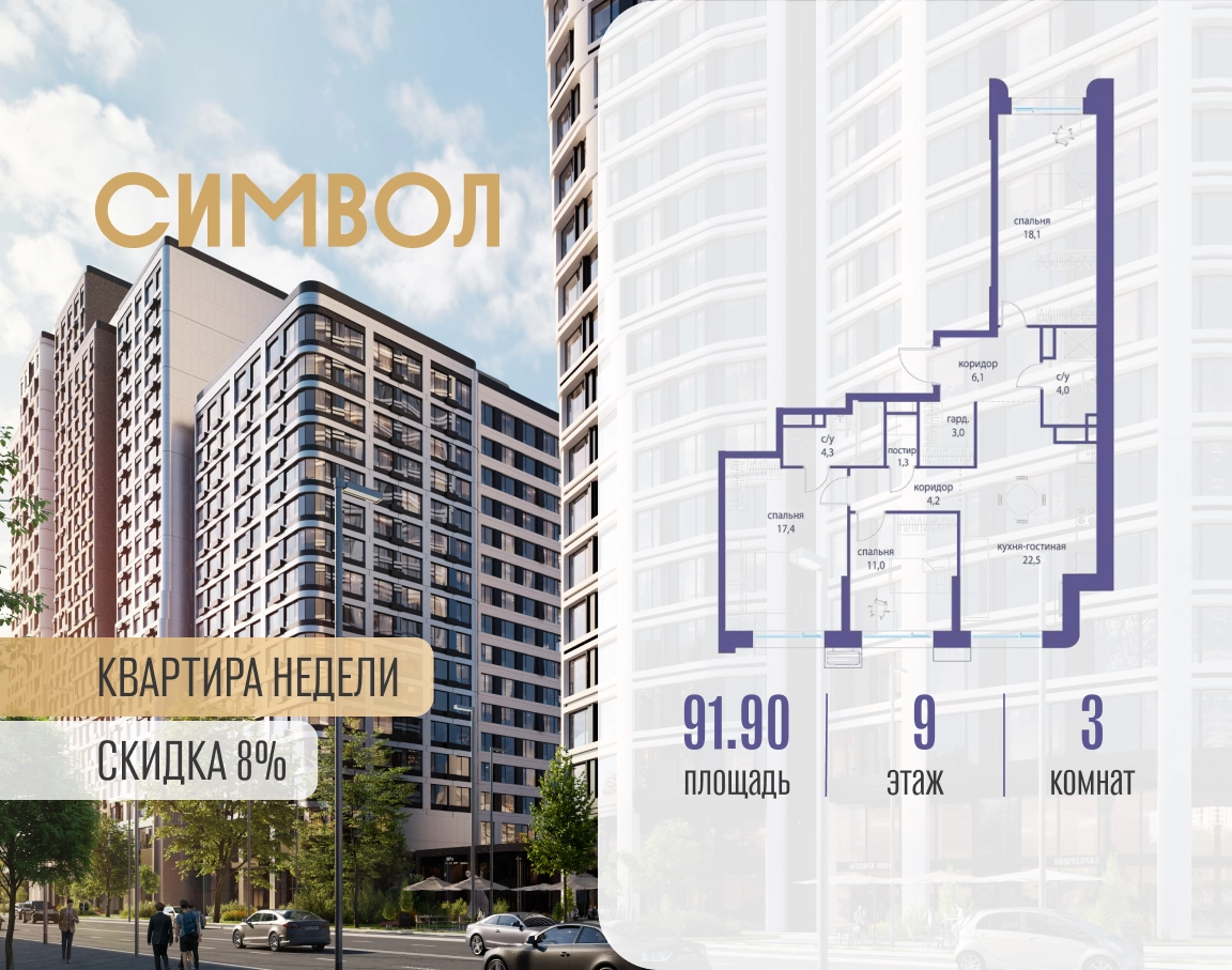 Продается 3-комнатная квартира от застройщика: общая площадь 91.90 м², жилая 46.50 м², кухня 22.50 м², 9-й этаж, жилой квартал «Гордость», корпус 36 (секция 2). Срок сдачи: 2 квартал 2029 года. Позвоните сейчас и забронируйте квартиру! Квартал бизнес-класса СИМВОЛ — это городское пространство нового поколения в историческом районе Лефортово, на границе ЦАО, в 2 км от Садового кольца. Бионическая архитектура СИМВОЛА превратила Лефортово в суперсовременное и модное пространство. Из окон, с балконов и террас просторных квартир СИМВОЛА открываются отличные виды на город и новый парк «Зеленая река», «протекающий» через все кварталы комплекса на 2 км. В квартале уже есть все, что нужно для комфортной жизни: кафе и рестораны, супермаркеты и магазины, медицинские и физкультурно-оздоровительные центры, салоны красоты и барбершопы, аптеки и оптики, химчистки, пункты доставки и другие сервисы — всего более 90 действующих объектов внутриквартальной инфраструктуры. Для юных жителей СИМВОЛА открыты детский сад и инженерный лицей при МГТУ им. Баумана. Особенности квартала: • Свой парк «Зеленая Река» - 10 га зелени и развлечений на любой вкус! • Уникальная для Москвы архитектура - Проект создан архитектурной мастерской ATRIUM по дизайн-коду британских бюро LDA Design и UHA London. • Богатая инфраструктура с детскими садами и лицеем им. Баумана, кафе и ресторанами, супермаркетами и аптеками, зоной для фитнеса, бассейном и мед. центром. • Квартиры с панорамными окнами, террасами, ванными с окнами и каминами редких форматов. • Закрытые безопасные зелёные дворы-парки без машин!О застройщике
