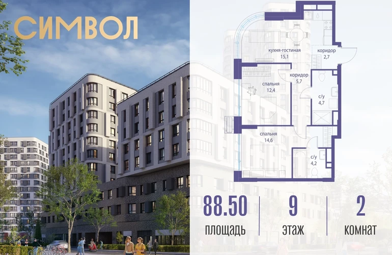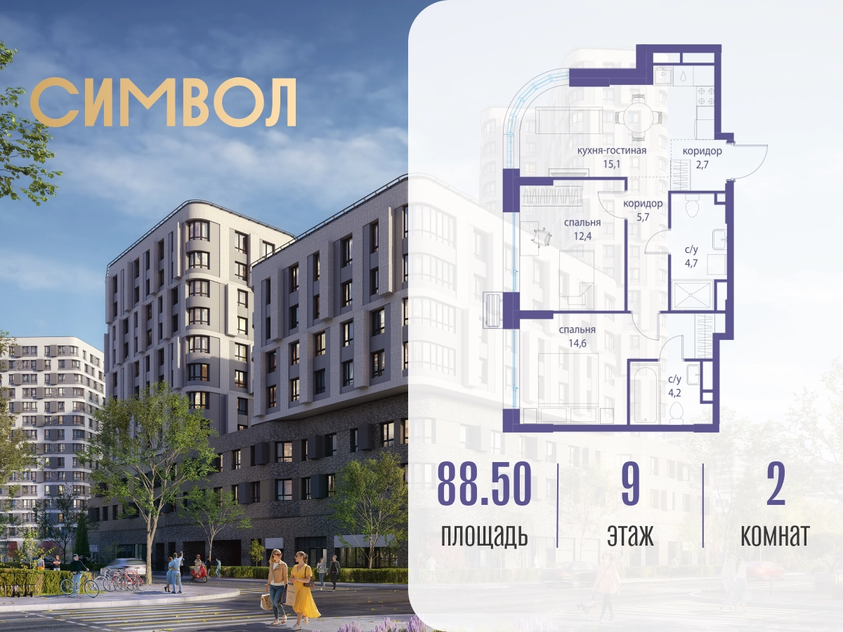 Продается 2-комнатная квартира от застройщика: общая площадь 88.50 м², жилая 31.10 м², кухня 29.60 м², 9-й этаж, жилой квартал «Вдохновение», корпус 33 (секция 1). Срок сдачи: 4 квартал 2027 года. Позвоните сейчас и забронируйте квартиру! Квартал бизнес-класса СИМВОЛ — это городское пространство нового поколения в историческом районе Лефортово, на границе ЦАО, в 2 км от Садового кольца. Бионическая архитектура СИМВОЛА превратила Лефортово в суперсовременное и модное пространство. Из окон, с балконов и террас просторных квартир СИМВОЛА открываются отличные виды на город и новый парк «Зеленая река», «протекающий» через все кварталы комплекса на 2 км. В квартале уже есть все, что нужно для комфортной жизни: кафе и рестораны, супермаркеты и магазины, медицинские и физкультурно-оздоровительные центры, салоны красоты и барбершопы, аптеки и оптики, химчистки, пункты доставки и другие сервисы — всего более 90 действующих объектов внутриквартальной инфраструктуры. Для юных жителей СИМВОЛА открыты детский сад и инженерный лицей при МГТУ им. Баумана. Особенности квартала: • Свой парк «Зеленая Река» - 10 га зелени и развлечений на любой вкус! • Уникальная для Москвы архитектура - Проект создан архитектурной мастерской ATRIUM по дизайн-коду британских бюро LDA Design и UHA London. • Богатая инфраструктура с детскими садами и лицеем им. Баумана, кафе и ресторанами, супермаркетами и аптеками, зоной для фитнеса, бассейном и мед. центром. • Квартиры с панорамными окнами, террасами, ванными с окнами и каминами редких форматов. • Закрытые безопасные зелёные дворы-парки без машин!О застройщике