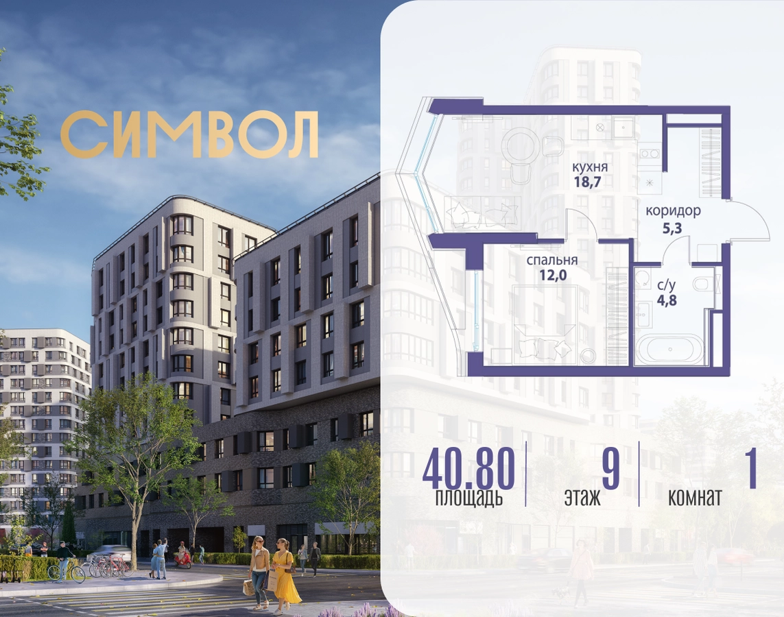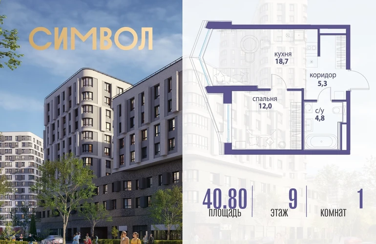 Продается 1-комнатная квартира от застройщика: общая площадь 40.80 м², жилая 12.00 м², кухня 18.70 м², 9-й этаж, жилой квартал «Вдохновение», корпус 33 (секция 3). Срок сдачи: 4 квартал 2027 года. Позвоните сейчас и забронируйте квартиру! Квартал бизнес-класса СИМВОЛ — это городское пространство нового поколения в историческом районе Лефортово, на границе ЦАО, в 2 км от Садового кольца. Бионическая архитектура СИМВОЛА превратила Лефортово в суперсовременное и модное пространство. Из окон, с балконов и террас просторных квартир СИМВОЛА открываются отличные виды на город и новый парк «Зеленая река», «протекающий» через все кварталы комплекса на 2 км. В квартале уже есть все, что нужно для комфортной жизни: кафе и рестораны, супермаркеты и магазины, медицинские и физкультурно-оздоровительные центры, салоны красоты и барбершопы, аптеки и оптики, химчистки, пункты доставки и другие сервисы — всего более 90 действующих объектов внутриквартальной инфраструктуры. Для юных жителей СИМВОЛА открыты детский сад и инженерный лицей при МГТУ им. Баумана. Особенности квартала: • Свой парк «Зеленая Река» - 10 га зелени и развлечений на любой вкус! • Уникальная для Москвы архитектура - Проект создан архитектурной мастерской ATRIUM по дизайн-коду британских бюро LDA Design и UHA London. • Богатая инфраструктура с детскими садами и лицеем им. Баумана, кафе и ресторанами, супермаркетами и аптеками, зоной для фитнеса, бассейном и мед. центром. • Квартиры с панорамными окнами, террасами, ванными с окнами и каминами редких форматов. • Закрытые безопасные зелёные дворы-парки без машин!О застройщике