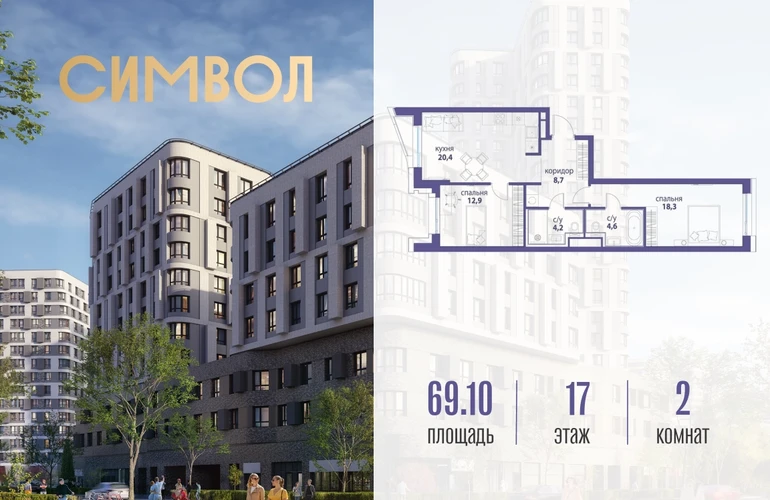 Продается 2-комнатная квартира от застройщика: общая площадь 69.10 м², жилая 31.20 м², кухня 20.40 м², 17-й этаж, жилой квартал «Вдохновение», корпус 33 (секция 3). Срок сдачи: 4 квартал 2027 года. Позвоните сейчас и забронируйте квартиру! Квартал бизнес-класса СИМВОЛ — это городское пространство нового поколения в историческом районе Лефортово, на границе ЦАО, в 2 км от Садового кольца. Бионическая архитектура СИМВОЛА превратила Лефортово в суперсовременное и модное пространство. Из окон, с балконов и террас просторных квартир СИМВОЛА открываются отличные виды на город и новый парк «Зеленая река», «протекающий» через все кварталы комплекса на 2 км. В квартале уже есть все, что нужно для комфортной жизни: кафе и рестораны, супермаркеты и магазины, медицинские и физкультурно-оздоровительные центры, салоны красоты и барбершопы, аптеки и оптики, химчистки, пункты доставки и другие сервисы — всего более 90 действующих объектов внутриквартальной инфраструктуры. Для юных жителей СИМВОЛА открыты детский сад и инженерный лицей при МГТУ им. Баумана. Особенности квартала: • Свой парк «Зеленая Река» - 10 га зелени и развлечений на любой вкус! • Уникальная для Москвы архитектура - Проект создан архитектурной мастерской ATRIUM по дизайн-коду британских бюро LDA Design и UHA London. • Богатая инфраструктура с детскими садами и лицеем им. Баумана, кафе и ресторанами, супермаркетами и аптеками, зоной для фитнеса, бассейном и мед. центром. • Квартиры с панорамными окнами, террасами, ванными с окнами и каминами редких форматов. • Закрытые безопасные зелёные дворы-парки без машин!О застройщике