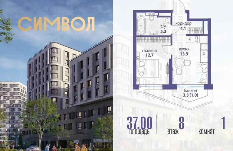 Продается 1-комнатная квартира от застройщика: общая площадь 37.00 м², жилая 12.70 м², кухня 13.90 м², 8-й этаж, жилой квартал «Вдохновение», корпус 33 (секция 1). Срок сдачи: 4 квартал 2027 года. Позвоните сейчас и забронируйте квартиру! Квартал бизнес-класса СИМВОЛ — это городское пространство нового поколения в историческом районе Лефортово, на границе ЦАО, в 2 км от Садового кольца. Бионическая архитектура СИМВОЛА превратила Лефортово в суперсовременное и модное пространство. Из окон, с балконов и террас просторных квартир СИМВОЛА открываются отличные виды на город и новый парк «Зеленая река», «протекающий» через все кварталы комплекса на 2 км. В квартале уже есть все, что нужно для комфортной жизни: кафе и рестораны, супермаркеты и магазины, медицинские и физкультурно-оздоровительные центры, салоны красоты и барбершопы, аптеки и оптики, химчистки, пункты доставки и другие сервисы — всего более 90 действующих объектов внутриквартальной инфраструктуры. Для юных жителей СИМВОЛА открыты детский сад и инженерный лицей при МГТУ им. Баумана. Особенности квартала: • Свой парк «Зеленая Река» - 10 га зелени и развлечений на любой вкус! • Уникальная для Москвы архитектура - Проект создан архитектурной мастерской ATRIUM по дизайн-коду британских бюро LDA Design и UHA London. • Богатая инфраструктура с детскими садами и лицеем им. Баумана, кафе и ресторанами, супермаркетами и аптеками, зоной для фитнеса, бассейном и мед. центром. • Квартиры с панорамными окнами, террасами, ванными с окнами и каминами редких форматов. • Закрытые безопасные зелёные дворы-парки без машин!О застройщике