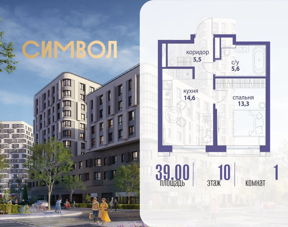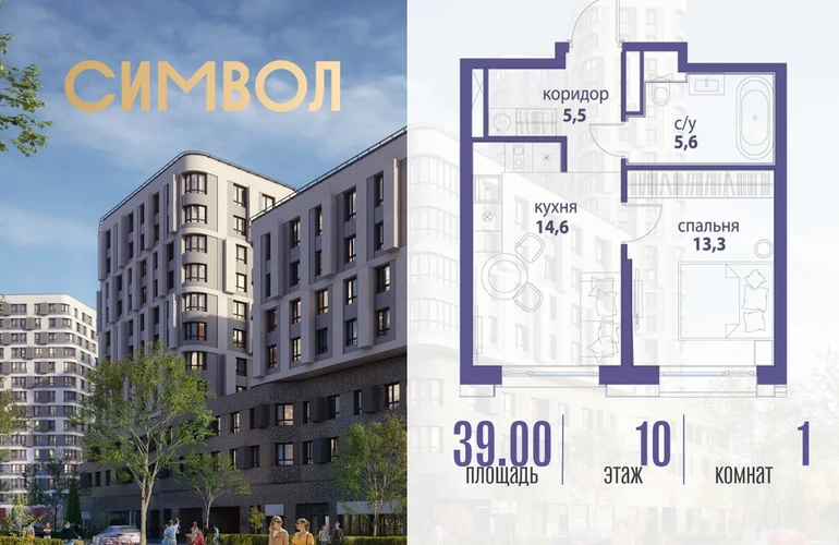 Продается 1-комнатная квартира от застройщика: общая площадь 39.00 м², жилая 13.30 м², кухня 14.60 м², 10-й этаж, жилой квартал «Вдохновение», корпус 33 (секция 2). Срок сдачи: 4 квартал 2027 года. Позвоните сейчас и забронируйте квартиру! Квартал бизнес-класса СИМВОЛ — это городское пространство нового поколения в историческом районе Лефортово, на границе ЦАО, в 2 км от Садового кольца. Бионическая архитектура СИМВОЛА превратила Лефортово в суперсовременное и модное пространство. Из окон, с балконов и террас просторных квартир СИМВОЛА открываются отличные виды на город и новый парк «Зеленая река», «протекающий» через все кварталы комплекса на 2 км. В квартале уже есть все, что нужно для комфортной жизни: кафе и рестораны, супермаркеты и магазины, медицинские и физкультурно-оздоровительные центры, салоны красоты и барбершопы, аптеки и оптики, химчистки, пункты доставки и другие сервисы — всего более 90 действующих объектов внутриквартальной инфраструктуры. Для юных жителей СИМВОЛА открыты детский сад и инженерный лицей при МГТУ им. Баумана. Особенности квартала: • Свой парк «Зеленая Река» - 10 га зелени и развлечений на любой вкус! • Уникальная для Москвы архитектура - Проект создан архитектурной мастерской ATRIUM по дизайн-коду британских бюро LDA Design и UHA London. • Богатая инфраструктура с детскими садами и лицеем им. Баумана, кафе и ресторанами, супермаркетами и аптеками, зоной для фитнеса, бассейном и мед. центром. • Квартиры с панорамными окнами, террасами, ванными с окнами и каминами редких форматов. • Закрытые безопасные зелёные дворы-парки без машин!О застройщике