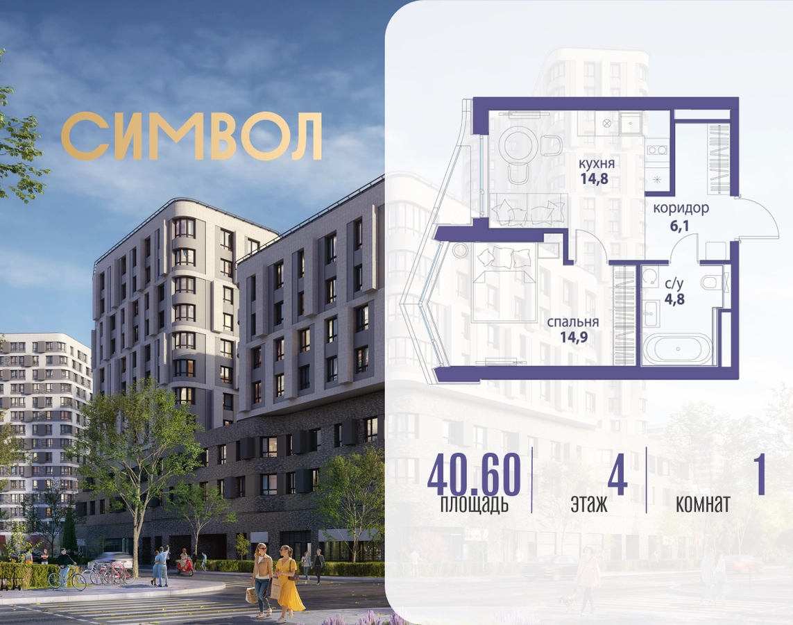 Продается 1-комнатная квартира от застройщика: общая площадь 40.60 м², жилая 14.90 м², кухня 14.80 м², 4-й этаж, жилой квартал «Вдохновение», корпус 33 (секция 3). Срок сдачи: 4 квартал 2027 года. Позвоните сейчас и забронируйте квартиру! Квартал бизнес-класса СИМВОЛ — это городское пространство нового поколения в историческом районе Лефортово, на границе ЦАО, в 2 км от Садового кольца. Бионическая архитектура СИМВОЛА превратила Лефортово в суперсовременное и модное пространство. Из окон, с балконов и террас просторных квартир СИМВОЛА открываются отличные виды на город и новый парк «Зеленая река», «протекающий» через все кварталы комплекса на 2 км. В квартале уже есть все, что нужно для комфортной жизни: кафе и рестораны, супермаркеты и магазины, медицинские и физкультурно-оздоровительные центры, салоны красоты и барбершопы, аптеки и оптики, химчистки, пункты доставки и другие сервисы — всего более 90 действующих объектов внутриквартальной инфраструктуры. Для юных жителей СИМВОЛА открыты детский сад и инженерный лицей при МГТУ им. Баумана. Особенности квартала: • Свой парк «Зеленая Река» - 10 га зелени и развлечений на любой вкус! • Уникальная для Москвы архитектура - Проект создан архитектурной мастерской ATRIUM по дизайн-коду британских бюро LDA Design и UHA London. • Богатая инфраструктура с детскими садами и лицеем им. Баумана, кафе и ресторанами, супермаркетами и аптеками, зоной для фитнеса, бассейном и мед. центром. • Квартиры с панорамными окнами, террасами, ванными с окнами и каминами редких форматов. • Закрытые безопасные зелёные дворы-парки без машин!О застройщике