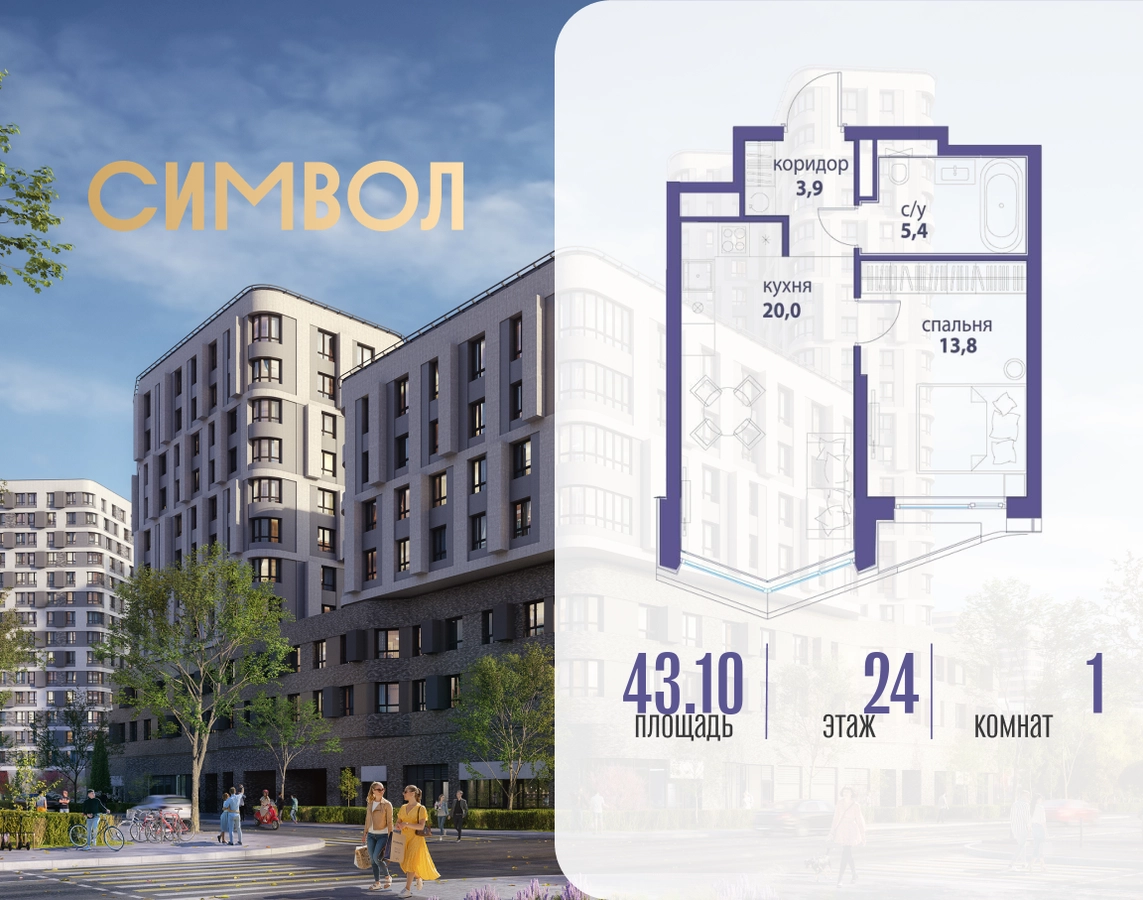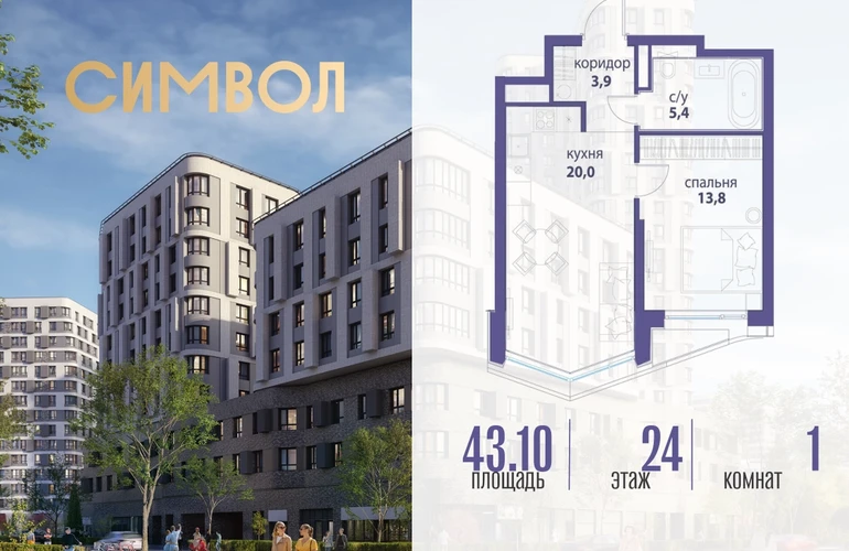 Продается 1-комнатная квартира от застройщика: общая площадь 43.10 м², жилая 13.80 м², кухня 20.00 м², 24-й этаж, жилой квартал «Вдохновение», корпус 33 (секция 2). Срок сдачи: 4 квартал 2027 года. Позвоните сейчас и забронируйте квартиру! Квартал бизнес-класса СИМВОЛ — это городское пространство нового поколения в историческом районе Лефортово, на границе ЦАО, в 2 км от Садового кольца. Бионическая архитектура СИМВОЛА превратила Лефортово в суперсовременное и модное пространство. Из окон, с балконов и террас просторных квартир СИМВОЛА открываются отличные виды на город и новый парк «Зеленая река», «протекающий» через все кварталы комплекса на 2 км. В квартале уже есть все, что нужно для комфортной жизни: кафе и рестораны, супермаркеты и магазины, медицинские и физкультурно-оздоровительные центры, салоны красоты и барбершопы, аптеки и оптики, химчистки, пункты доставки и другие сервисы — всего более 90 действующих объектов внутриквартальной инфраструктуры. Для юных жителей СИМВОЛА открыты детский сад и инженерный лицей при МГТУ им. Баумана. Особенности квартала: • Свой парк «Зеленая Река» - 10 га зелени и развлечений на любой вкус! • Уникальная для Москвы архитектура - Проект создан архитектурной мастерской ATRIUM по дизайн-коду британских бюро LDA Design и UHA London. • Богатая инфраструктура с детскими садами и лицеем им. Баумана, кафе и ресторанами, супермаркетами и аптеками, зоной для фитнеса, бассейном и мед. центром. • Квартиры с панорамными окнами, террасами, ванными с окнами и каминами редких форматов. • Закрытые безопасные зелёные дворы-парки без машин!О застройщике