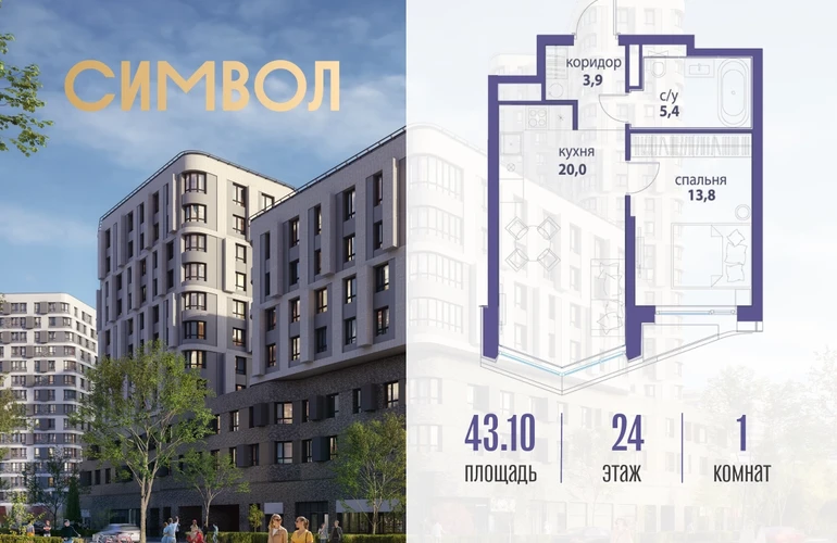 Продается 1-комнатная квартира от застройщика: общая площадь 43.10 м², жилая 13.80 м², кухня 20.00 м², 24-й этаж, жилой квартал «Вдохновение», корпус 33 (секция 2). Срок сдачи: 4 квартал 2027 года. Позвоните сейчас и забронируйте квартиру! Квартал бизнес-класса СИМВОЛ — это городское пространство нового поколения в историческом районе Лефортово, на границе ЦАО, в 2 км от Садового кольца. Бионическая архитектура СИМВОЛА превратила Лефортово в суперсовременное и модное пространство. Из окон, с балконов и террас просторных квартир СИМВОЛА открываются отличные виды на город и новый парк «Зеленая река», «протекающий» через все кварталы комплекса на 2 км. В квартале уже есть все, что нужно для комфортной жизни: кафе и рестораны, супермаркеты и магазины, медицинские и физкультурно-оздоровительные центры, салоны красоты и барбершопы, аптеки и оптики, химчистки, пункты доставки и другие сервисы — всего более 90 действующих объектов внутриквартальной инфраструктуры. Для юных жителей СИМВОЛА открыты детский сад и инженерный лицей при МГТУ им. Баумана. Особенности квартала: • Свой парк «Зеленая Река» - 10 га зелени и развлечений на любой вкус! • Уникальная для Москвы архитектура - Проект создан архитектурной мастерской ATRIUM по дизайн-коду британских бюро LDA Design и UHA London. • Богатая инфраструктура с детскими садами и лицеем им. Баумана, кафе и ресторанами, супермаркетами и аптеками, зоной для фитнеса, бассейном и мед. центром. • Квартиры с панорамными окнами, террасами, ванными с окнами и каминами редких форматов. • Закрытые безопасные зелёные дворы-парки без машин!О застройщике