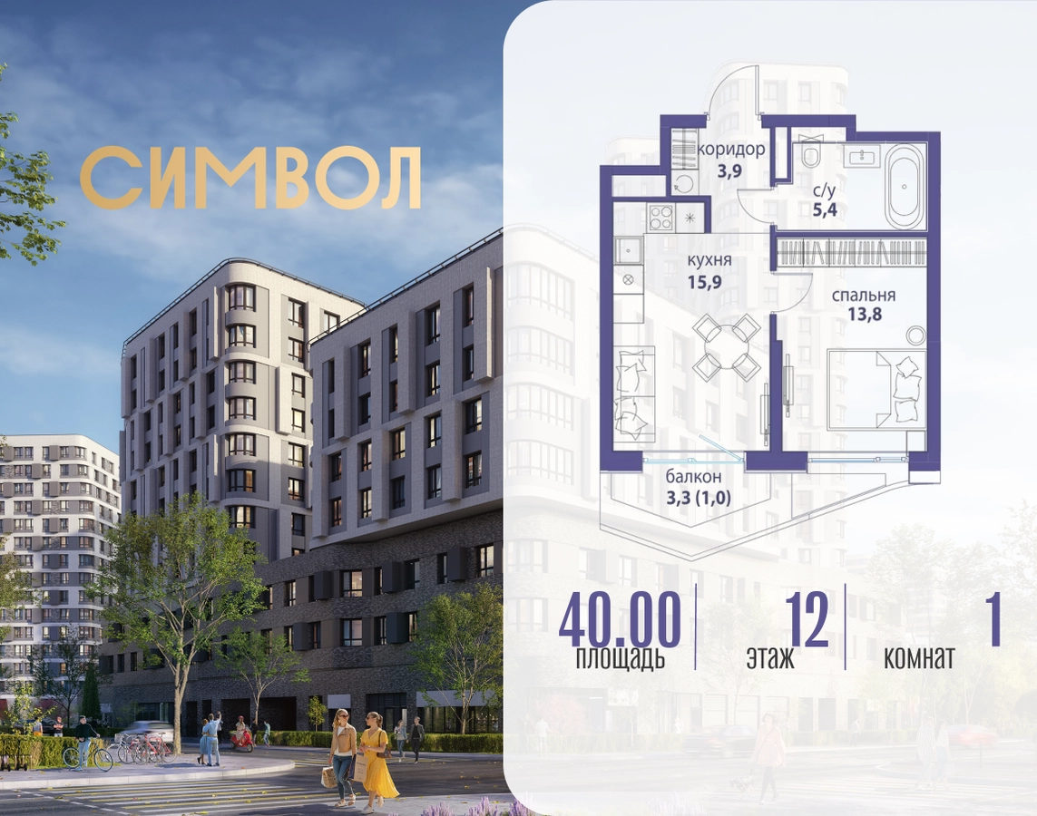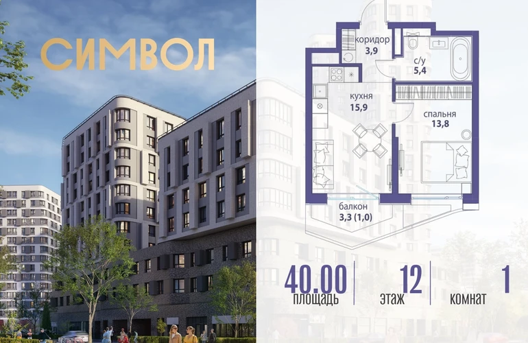 Продается 1-комнатная квартира от застройщика: общая площадь 40.00 м², жилая 13.80 м², кухня 15.90 м², 12-й этаж, жилой квартал «Вдохновение», корпус 33 (секция 2). Срок сдачи: 4 квартал 2027 года. Позвоните сейчас и забронируйте квартиру! Квартал бизнес-класса СИМВОЛ — это городское пространство нового поколения в историческом районе Лефортово, на границе ЦАО, в 2 км от Садового кольца. Бионическая архитектура СИМВОЛА превратила Лефортово в суперсовременное и модное пространство. Из окон, с балконов и террас просторных квартир СИМВОЛА открываются отличные виды на город и новый парк «Зеленая река», «протекающий» через все кварталы комплекса на 2 км. В квартале уже есть все, что нужно для комфортной жизни: кафе и рестораны, супермаркеты и магазины, медицинские и физкультурно-оздоровительные центры, салоны красоты и барбершопы, аптеки и оптики, химчистки, пункты доставки и другие сервисы — всего более 90 действующих объектов внутриквартальной инфраструктуры. Для юных жителей СИМВОЛА открыты детский сад и инженерный лицей при МГТУ им. Баумана. Особенности квартала: • Свой парк «Зеленая Река» - 10 га зелени и развлечений на любой вкус! • Уникальная для Москвы архитектура - Проект создан архитектурной мастерской ATRIUM по дизайн-коду британских бюро LDA Design и UHA London. • Богатая инфраструктура с детскими садами и лицеем им. Баумана, кафе и ресторанами, супермаркетами и аптеками, зоной для фитнеса, бассейном и мед. центром. • Квартиры с панорамными окнами, террасами, ванными с окнами и каминами редких форматов. • Закрытые безопасные зелёные дворы-парки без машин!О застройщике