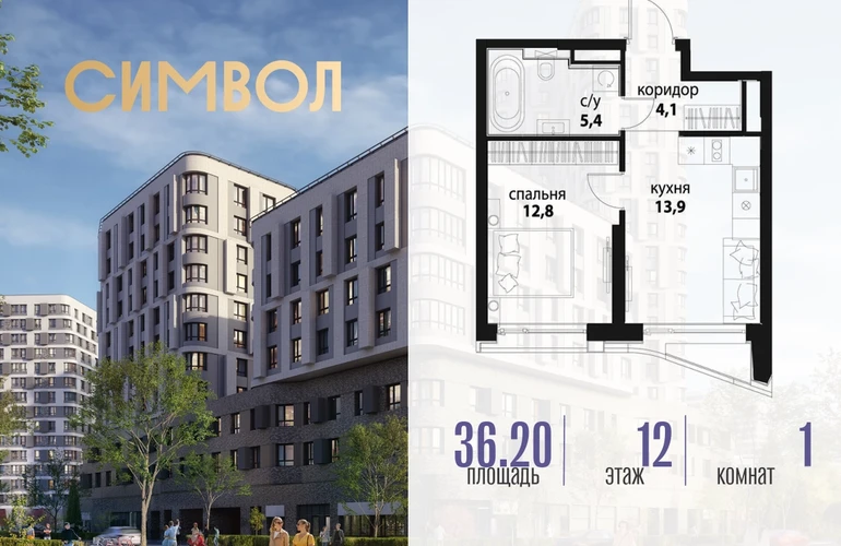 Продается 1-комнатная квартира от застройщика: общая площадь 36.20 м², жилая 12.80 м², кухня 13.90 м², 12-й этаж, жилой квартал «Вдохновение», корпус 33 (секция 1). Срок сдачи: 4 квартал 2027 года. Позвоните сейчас и забронируйте квартиру! Квартал бизнес-класса СИМВОЛ — это городское пространство нового поколения в историческом районе Лефортово, на границе ЦАО, в 2 км от Садового кольца. Бионическая архитектура СИМВОЛА превратила Лефортово в суперсовременное и модное пространство. Из окон, с балконов и террас просторных квартир СИМВОЛА открываются отличные виды на город и новый парк «Зеленая река», «протекающий» через все кварталы комплекса на 2 км. В квартале уже есть все, что нужно для комфортной жизни: кафе и рестораны, супермаркеты и магазины, медицинские и физкультурно-оздоровительные центры, салоны красоты и барбершопы, аптеки и оптики, химчистки, пункты доставки и другие сервисы — всего более 90 действующих объектов внутриквартальной инфраструктуры. Для юных жителей СИМВОЛА открыты детский сад и инженерный лицей при МГТУ им. Баумана. Особенности квартала: • Свой парк «Зеленая Река» - 10 га зелени и развлечений на любой вкус! • Уникальная для Москвы архитектура - Проект создан архитектурной мастерской ATRIUM по дизайн-коду британских бюро LDA Design и UHA London. • Богатая инфраструктура с детскими садами и лицеем им. Баумана, кафе и ресторанами, супермаркетами и аптеками, зоной для фитнеса, бассейном и мед. центром. • Квартиры с панорамными окнами, террасами, ванными с окнами и каминами редких форматов. • Закрытые безопасные зелёные дворы-парки без машин!О застройщике