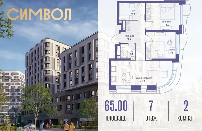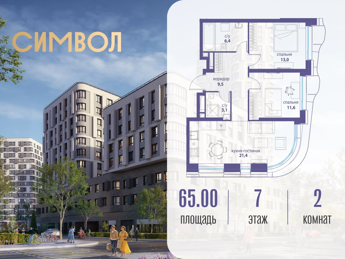 Продается 2-комнатная квартира от застройщика: общая площадь 65.00 м², жилая 24.60 м², кухня 21.40 м², 7-й этаж, жилой квартал «Вдохновение», корпус 34 (секция 1). Срок сдачи: 4 квартал 2027 года. Позвоните сейчас и забронируйте квартиру! Квартал бизнес-класса СИМВОЛ — это городское пространство нового поколения в историческом районе Лефортово, на границе ЦАО, в 2 км от Садового кольца. Бионическая архитектура СИМВОЛА превратила Лефортово в суперсовременное и модное пространство. Из окон, с балконов и террас просторных квартир СИМВОЛА открываются отличные виды на город и новый парк «Зеленая река», «протекающий» через все кварталы комплекса на 2 км. В квартале уже есть все, что нужно для комфортной жизни: кафе и рестораны, супермаркеты и магазины, медицинские и физкультурно-оздоровительные центры, салоны красоты и барбершопы, аптеки и оптики, химчистки, пункты доставки и другие сервисы — всего более 90 действующих объектов внутриквартальной инфраструктуры. Для юных жителей СИМВОЛА открыты детский сад и инженерный лицей при МГТУ им. Баумана. Особенности квартала: • Свой парк «Зеленая Река» - 10 га зелени и развлечений на любой вкус! • Уникальная для Москвы архитектура - Проект создан архитектурной мастерской ATRIUM по дизайн-коду британских бюро LDA Design и UHA London. • Богатая инфраструктура с детскими садами и лицеем им. Баумана, кафе и ресторанами, супермаркетами и аптеками, зоной для фитнеса, бассейном и мед. центром. • Квартиры с панорамными окнами, террасами, ванными с окнами и каминами редких форматов. • Закрытые безопасные зелёные дворы-парки без машин!О застройщике