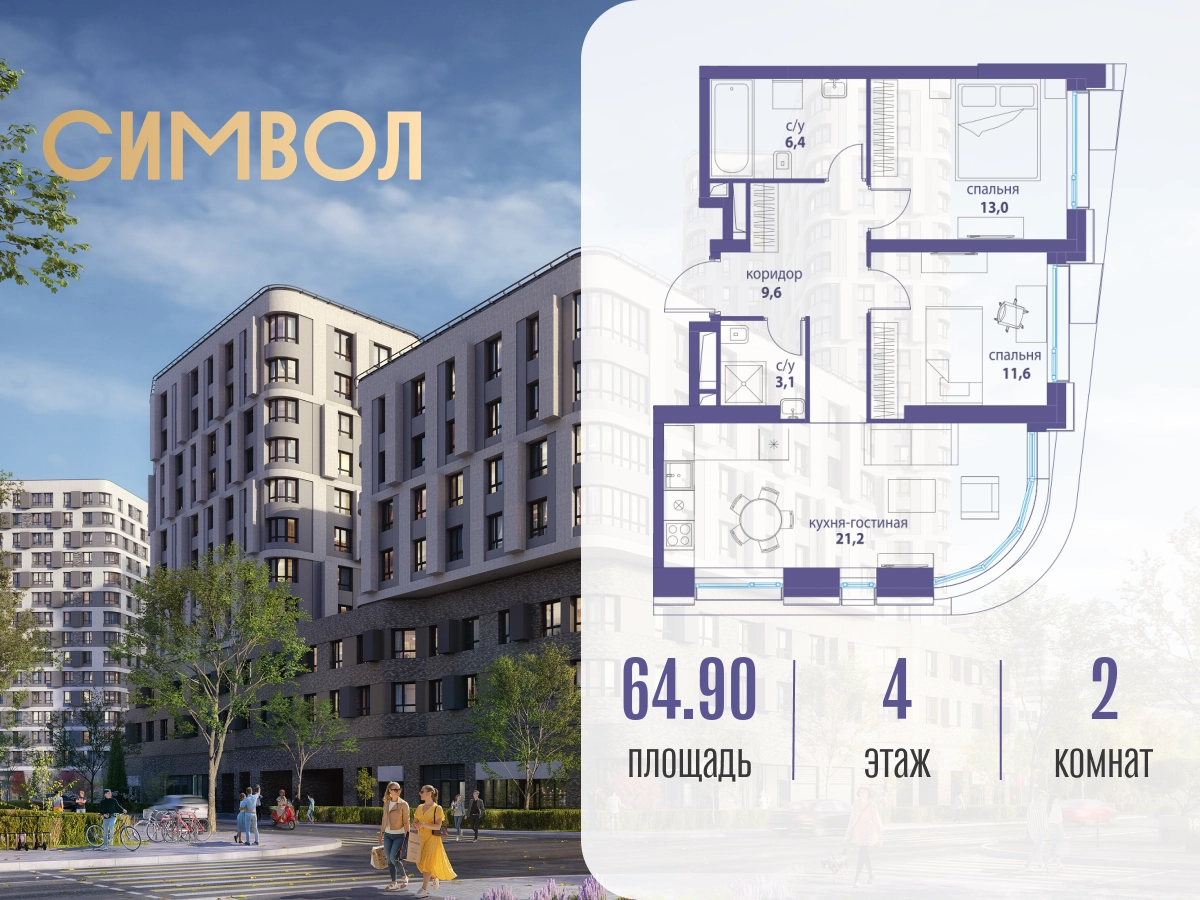 Продается 2-комнатная квартира от застройщика: общая площадь 64.90 м², жилая м², кухня м², 4-й этаж, жилой квартал «Вдохновение», корпус 34 (секция 1). Срок сдачи: 4 квартал 2027 года. Позвоните сейчас и забронируйте квартиру! Квартал бизнес-класса СИМВОЛ — это городское пространство нового поколения в историческом районе Лефортово, на границе ЦАО, в 2 км от Садового кольца. Бионическая архитектура СИМВОЛА превратила Лефортово в суперсовременное и модное пространство. Из окон, с балконов и террас просторных квартир СИМВОЛА открываются отличные виды на город и новый парк «Зеленая река», «протекающий» через все кварталы комплекса на 2 км. В квартале уже есть все, что нужно для комфортной жизни: кафе и рестораны, супермаркеты и магазины, медицинские и физкультурно-оздоровительные центры, салоны красоты и барбершопы, аптеки и оптики, химчистки, пункты доставки и другие сервисы — всего более 90 действующих объектов внутриквартальной инфраструктуры. Для юных жителей СИМВОЛА открыты детский сад и инженерный лицей при МГТУ им. Баумана. Особенности квартала: • Свой парк «Зеленая Река» - 10 га зелени и развлечений на любой вкус! • Уникальная для Москвы архитектура - Проект создан архитектурной мастерской ATRIUM по дизайн-коду британских бюро LDA Design и UHA London. • Богатая инфраструктура с детскими садами и лицеем им. Баумана, кафе и ресторанами, супермаркетами и аптеками, зоной для фитнеса, бассейном и мед. центром. • Квартиры с панорамными окнами, террасами, ванными с окнами и каминами редких форматов. • Закрытые безопасные зелёные дворы-парки без машин!О застройщике