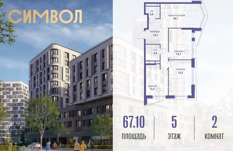Продается 2-комнатная квартира от застройщика: общая площадь 67.10 м², жилая м², кухня м², 5-й этаж, жилой квартал «Вдохновение», корпус 35 (секция 1). Срок сдачи: 4 квартал 2027 года. Позвоните сейчас и забронируйте квартиру! Квартал бизнес-класса СИМВОЛ — это городское пространство нового поколения в историческом районе Лефортово, на границе ЦАО, в 2 км от Садового кольца. Бионическая архитектура СИМВОЛА превратила Лефортово в суперсовременное и модное пространство. Из окон, с балконов и террас просторных квартир СИМВОЛА открываются отличные виды на город и новый парк «Зеленая река», «протекающий» через все кварталы комплекса на 2 км. В квартале уже есть все, что нужно для комфортной жизни: кафе и рестораны, супермаркеты и магазины, медицинские и физкультурно-оздоровительные центры, салоны красоты и барбершопы, аптеки и оптики, химчистки, пункты доставки и другие сервисы — всего более 90 действующих объектов внутриквартальной инфраструктуры. Для юных жителей СИМВОЛА открыты детский сад и инженерный лицей при МГТУ им. Баумана. Особенности квартала: • Свой парк «Зеленая Река» - 10 га зелени и развлечений на любой вкус! • Уникальная для Москвы архитектура - Проект создан архитектурной мастерской ATRIUM по дизайн-коду британских бюро LDA Design и UHA London. • Богатая инфраструктура с детскими садами и лицеем им. Баумана, кафе и ресторанами, супермаркетами и аптеками, зоной для фитнеса, бассейном и мед. центром. • Квартиры с панорамными окнами, террасами, ванными с окнами и каминами редких форматов. • Закрытые безопасные зелёные дворы-парки без машин!О застройщике