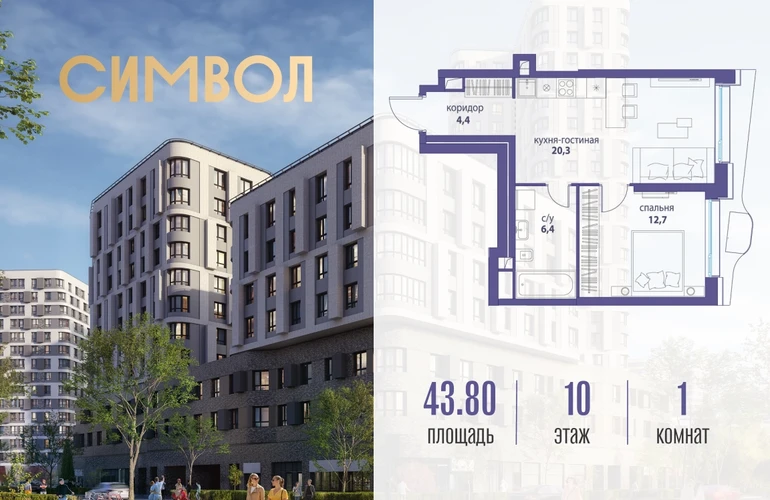 Продается 1-комнатная квартира от застройщика: общая площадь 43.80 м², жилая 12.70 м², кухня 20.30 м², 10-й этаж, жилой квартал «Вдохновение», корпус 35 (секция 1). Срок сдачи: 4 квартал 2027 года. Позвоните сейчас и забронируйте квартиру! Квартал бизнес-класса СИМВОЛ — это городское пространство нового поколения в историческом районе Лефортово, на границе ЦАО, в 2 км от Садового кольца. Бионическая архитектура СИМВОЛА превратила Лефортово в суперсовременное и модное пространство. Из окон, с балконов и террас просторных квартир СИМВОЛА открываются отличные виды на город и новый парк «Зеленая река», «протекающий» через все кварталы комплекса на 2 км. В квартале уже есть все, что нужно для комфортной жизни: кафе и рестораны, супермаркеты и магазины, медицинские и физкультурно-оздоровительные центры, салоны красоты и барбершопы, аптеки и оптики, химчистки, пункты доставки и другие сервисы — всего более 90 действующих объектов внутриквартальной инфраструктуры. Для юных жителей СИМВОЛА открыты детский сад и инженерный лицей при МГТУ им. Баумана. Особенности квартала: • Свой парк «Зеленая Река» - 10 га зелени и развлечений на любой вкус! • Уникальная для Москвы архитектура - Проект создан архитектурной мастерской ATRIUM по дизайн-коду британских бюро LDA Design и UHA London. • Богатая инфраструктура с детскими садами и лицеем им. Баумана, кафе и ресторанами, супермаркетами и аптеками, зоной для фитнеса, бассейном и мед. центром. • Квартиры с панорамными окнами, террасами, ванными с окнами и каминами редких форматов. • Закрытые безопасные зелёные дворы-парки без машин!О застройщике