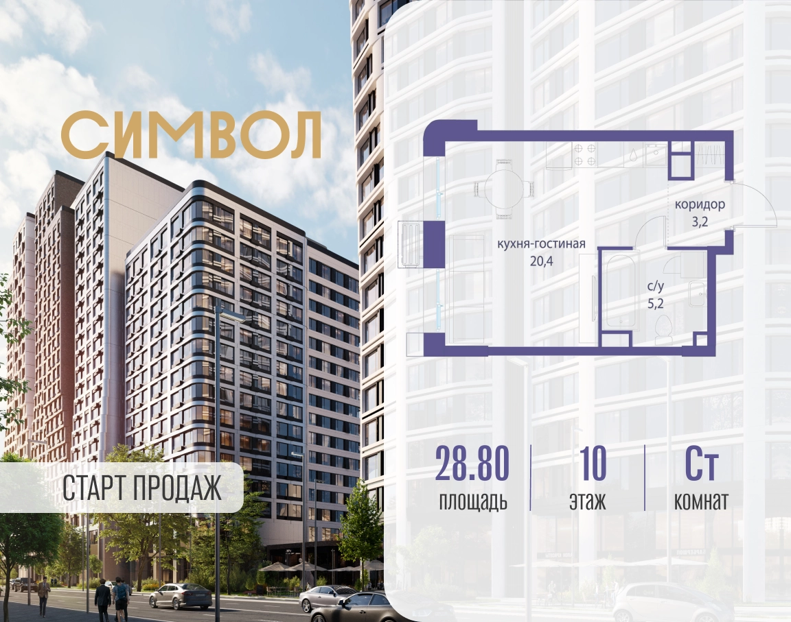 Продается квартира-студия от застройщика: общая площадь 28.80 м², жилая 10.00 м², кухня 10.40 м², 10-й этаж, жилой квартал «Гордость», корпус 36 (секция 5). Срок сдачи: 2 квартал 2029 года. Позвоните сейчас и забронируйте квартиру! Квартал бизнес-класса СИМВОЛ — это городское пространство нового поколения в историческом районе Лефортово, на границе ЦАО, в 2 км от Садового кольца. Бионическая архитектура СИМВОЛА превратила Лефортово в суперсовременное и модное пространство. Из окон, с балконов и террас просторных квартир СИМВОЛА открываются отличные виды на город и новый парк «Зеленая река», «протекающий» через все кварталы комплекса на 2 км. В квартале уже есть все, что нужно для комфортной жизни: кафе и рестораны, супермаркеты и магазины, медицинские и физкультурно-оздоровительные центры, салоны красоты и барбершопы, аптеки и оптики, химчистки, пункты доставки и другие сервисы — всего более 90 действующих объектов внутриквартальной инфраструктуры. Для юных жителей СИМВОЛА открыты детский сад и инженерный лицей при МГТУ им. Баумана. Особенности квартала: • Свой парк «Зеленая Река» - 10 га зелени и развлечений на любой вкус! • Уникальная для Москвы архитектура - Проект создан архитектурной мастерской ATRIUM по дизайн-коду британских бюро LDA Design и UHA London. • Богатая инфраструктура с детскими садами и лицеем им. Баумана, кафе и ресторанами, супермаркетами и аптеками, зоной для фитнеса, бассейном и мед. центром. • Квартиры с панорамными окнами, террасами, ванными с окнами и каминами редких форматов. • Закрытые безопасные зелёные дворы-парки без машин!О застройщике