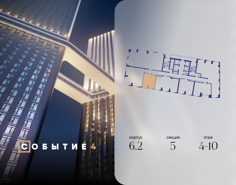 Продаётся квартира-студия от застройщика: общая площадь 31.50 м², жилая 20.10 м², кухня 5.00 м², 4-й этаж, жилой квартал «Событие-6», корпус 2 (секция 5) Срок сдачи: 1 квартал 2029 года. Позвоните сейчас и забронируйте квартиру! Продуманный до деталей. Созданный для жизни, полной счастливых событий. Парк-квартал СОБЫТИЕ — это жизнь класса премиум в престижном районе на Мосфильмовской улице. Архитектура мирового уровня. Выигрышное расположение на границе природного комплекса «Долина реки Раменки». Все для комфортной жизни и досуга: от детсадов и школ до ресторанов и медцентров. И новая точка притяжения — уже готовый парк «Событие» с пространствами активности для всех возрастов и интересов. Особенности квартала: • «Парящие» мосты и парк под облаками - уникальный дом с самыми завораживающими видами из окон «в пол» • Собственный парк — сразу за порогом! • Архитектурная концепция от известных международных бюро LDA Design и UHA London • Инфраструктура «тапочной доступности»: в кафе, школу, магазин — за пару минут! • Внутренний двор — настоящее продолжение вашего дома: закрытая охраняемая территория без машин, развивающие детские площадки, воркауты-зоны для тех, кто хочет быть в форме, площади для праздников и посиделок с соседями.О застройщике