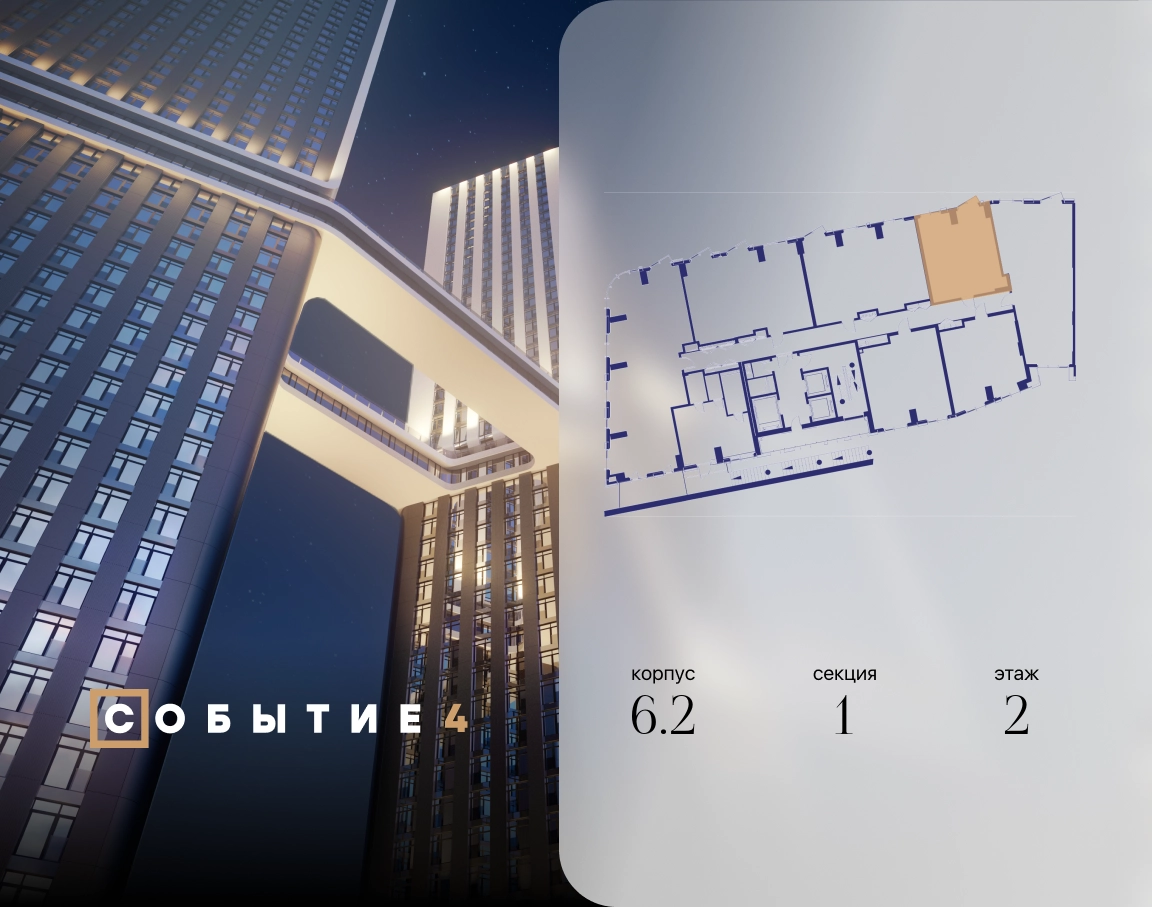 Продаётся 1-комнатная квартира от застройщика: общая площадь 47.10 м², жилая 16.30 м², кухня 23.40 м², 2-й этаж, жилой квартал «Событие-6», корпус 2 (секция 1) Срок сдачи: 1 квартал 2029 года. Позвоните сейчас и забронируйте квартиру! Продуманный до деталей. Созданный для жизни, полной счастливых событий. Парк-квартал СОБЫТИЕ — это жизнь класса премиум в престижном районе на Мосфильмовской улице. Архитектура мирового уровня. Выигрышное расположение на границе природного комплекса «Долина реки Раменки». Все для комфортной жизни и досуга: от детсадов и школ до ресторанов и медцентров. И новая точка притяжения — уже готовый парк «Событие» с пространствами активности для всех возрастов и интересов. Особенности квартала: • «Парящие» мосты и парк под облаками - уникальный дом с самыми завораживающими видами из окон «в пол» • Собственный парк — сразу за порогом! • Архитектурная концепция от известных международных бюро LDA Design и UHA London • Инфраструктура «тапочной доступности»: в кафе, школу, магазин — за пару минут! • Внутренний двор — настоящее продолжение вашего дома: закрытая охраняемая территория без машин, развивающие детские площадки, воркауты-зоны для тех, кто хочет быть в форме, площади для праздников и посиделок с соседями.О застройщике