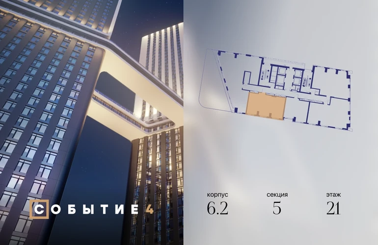 Продаётся 2-комнатная квартира от застройщика: общая площадь 60.80 м², жилая 32.20 м², кухня 17.60 м², 21-й этаж, жилой квартал «Событие-6», корпус 2 (секция 5) Срок сдачи: 1 квартал 2029 года. Позвоните сейчас и забронируйте квартиру! Продуманный до деталей. Созданный для жизни, полной счастливых событий. Парк-квартал СОБЫТИЕ — это жизнь класса премиум в престижном районе на Мосфильмовской улице. Архитектура мирового уровня. Выигрышное расположение на границе природного комплекса «Долина реки Раменки». Все для комфортной жизни и досуга: от детсадов и школ до ресторанов и медцентров. И новая точка притяжения — уже готовый парк «Событие» с пространствами активности для всех возрастов и интересов. Особенности квартала: • «Парящие» мосты и парк под облаками - уникальный дом с самыми завораживающими видами из окон «в пол» • Собственный парк — сразу за порогом! • Архитектурная концепция от известных международных бюро LDA Design и UHA London • Инфраструктура «тапочной доступности»: в кафе, школу, магазин — за пару минут! • Внутренний двор — настоящее продолжение вашего дома: закрытая охраняемая территория без машин, развивающие детские площадки, воркауты-зоны для тех, кто хочет быть в форме, площади для праздников и посиделок с соседями.О застройщике