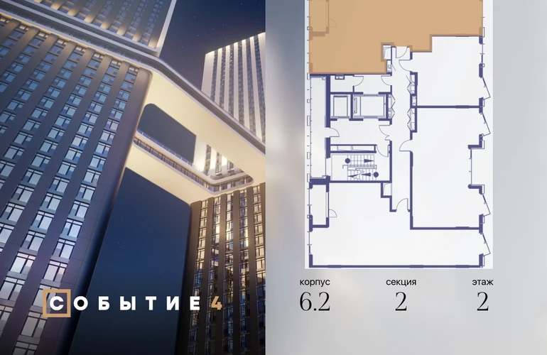 Продаётся 2-комнатная квартира от застройщика: общая площадь 70.80 м², жилая 30.30 м², кухня 21.80 м², 2-й этаж, жилой квартал «Событие-6», корпус 2 (секция 2) Срок сдачи: 1 квартал 2029 года. Позвоните сейчас и забронируйте квартиру! Продуманный до деталей. Созданный для жизни, полной счастливых событий. Парк-квартал СОБЫТИЕ — это жизнь класса премиум в престижном районе на Мосфильмовской улице. Архитектура мирового уровня. Выигрышное расположение на границе природного комплекса «Долина реки Раменки». Все для комфортной жизни и досуга: от детсадов и школ до ресторанов и медцентров. И новая точка притяжения — уже готовый парк «Событие» с пространствами активности для всех возрастов и интересов. Особенности квартала: • «Парящие» мосты и парк под облаками - уникальный дом с самыми завораживающими видами из окон «в пол» • Собственный парк — сразу за порогом! • Архитектурная концепция от известных международных бюро LDA Design и UHA London • Инфраструктура «тапочной доступности»: в кафе, школу, магазин — за пару минут! • Внутренний двор — настоящее продолжение вашего дома: закрытая охраняемая территория без машин, развивающие детские площадки, воркауты-зоны для тех, кто хочет быть в форме, площади для праздников и посиделок с соседями.О застройщике