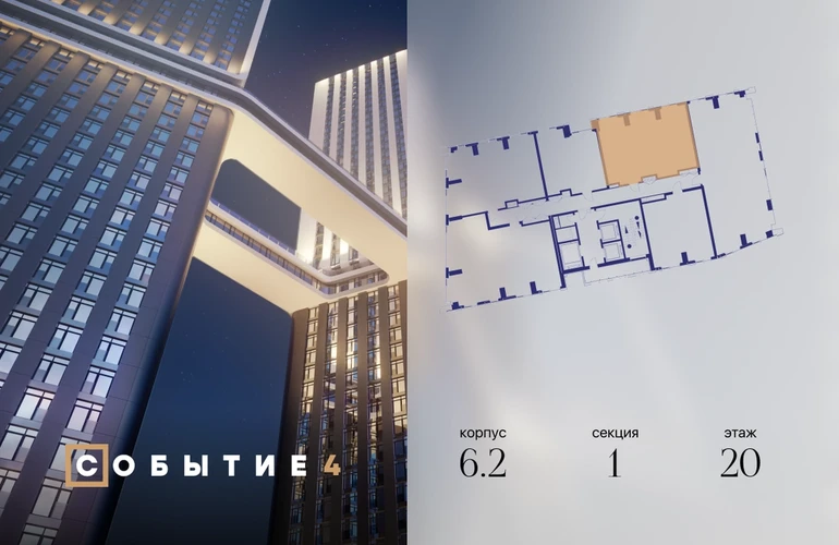 Продаётся 2-комнатная квартира от застройщика: общая площадь 72.50 м², жилая 31.50 м², кухня 24.40 м², 20-й этаж, жилой квартал «Событие-6», корпус 2 (секция 1) Срок сдачи: 1 квартал 2029 года. Позвоните сейчас и забронируйте квартиру! Продуманный до деталей. Созданный для жизни, полной счастливых событий. Парк-квартал СОБЫТИЕ — это жизнь класса премиум в престижном районе на Мосфильмовской улице. Архитектура мирового уровня. Выигрышное расположение на границе природного комплекса «Долина реки Раменки». Все для комфортной жизни и досуга: от детсадов и школ до ресторанов и медцентров. И новая точка притяжения — уже готовый парк «Событие» с пространствами активности для всех возрастов и интересов. Особенности квартала: • «Парящие» мосты и парк под облаками - уникальный дом с самыми завораживающими видами из окон «в пол» • Собственный парк — сразу за порогом! • Архитектурная концепция от известных международных бюро LDA Design и UHA London • Инфраструктура «тапочной доступности»: в кафе, школу, магазин — за пару минут! • Внутренний двор — настоящее продолжение вашего дома: закрытая охраняемая территория без машин, развивающие детские площадки, воркауты-зоны для тех, кто хочет быть в форме, площади для праздников и посиделок с соседями.О застройщике