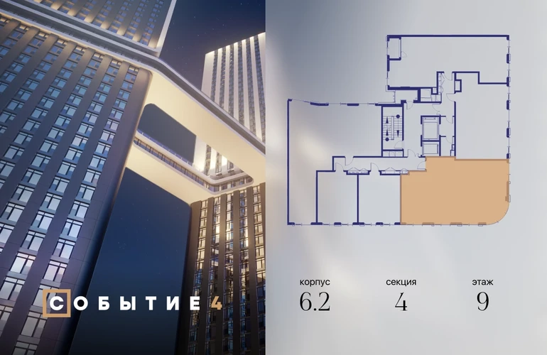 Продаётся 3-комнатная квартира от застройщика: общая площадь 99.00 м², жилая 45.50 м², кухня 27.20 м², 9-й этаж, жилой квартал «Событие-6», корпус 2 (секция 4) Срок сдачи: 1 квартал 2029 года. Позвоните сейчас и забронируйте квартиру! Продуманный до деталей. Созданный для жизни, полной счастливых событий. Парк-квартал СОБЫТИЕ — это жизнь класса премиум в престижном районе на Мосфильмовской улице. Архитектура мирового уровня. Выигрышное расположение на границе природного комплекса «Долина реки Раменки». Все для комфортной жизни и досуга: от детсадов и школ до ресторанов и медцентров. И новая точка притяжения — уже готовый парк «Событие» с пространствами активности для всех возрастов и интересов. Особенности квартала: • «Парящие» мосты и парк под облаками - уникальный дом с самыми завораживающими видами из окон «в пол» • Собственный парк — сразу за порогом! • Архитектурная концепция от известных международных бюро LDA Design и UHA London • Инфраструктура «тапочной доступности»: в кафе, школу, магазин — за пару минут! • Внутренний двор — настоящее продолжение вашего дома: закрытая охраняемая территория без машин, развивающие детские площадки, воркауты-зоны для тех, кто хочет быть в форме, площади для праздников и посиделок с соседями.О застройщике