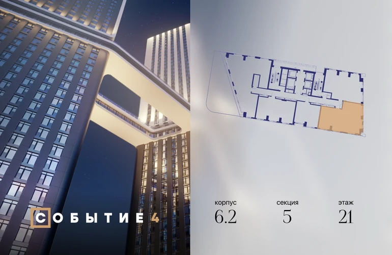 Продаётся 3-комнатная квартира от застройщика: общая площадь 80.20 м², жилая 44.90 м², кухня 17.00 м², 21-й этаж, жилой квартал «Событие-6», корпус 2 (секция 5) Срок сдачи: 1 квартал 2029 года. Позвоните сейчас и забронируйте квартиру! Продуманный до деталей. Созданный для жизни, полной счастливых событий. Парк-квартал СОБЫТИЕ — это жизнь класса премиум в престижном районе на Мосфильмовской улице. Архитектура мирового уровня. Выигрышное расположение на границе природного комплекса «Долина реки Раменки». Все для комфортной жизни и досуга: от детсадов и школ до ресторанов и медцентров. И новая точка притяжения — уже готовый парк «Событие» с пространствами активности для всех возрастов и интересов. Особенности квартала: • «Парящие» мосты и парк под облаками - уникальный дом с самыми завораживающими видами из окон «в пол» • Собственный парк — сразу за порогом! • Архитектурная концепция от известных международных бюро LDA Design и UHA London • Инфраструктура «тапочной доступности»: в кафе, школу, магазин — за пару минут! • Внутренний двор — настоящее продолжение вашего дома: закрытая охраняемая территория без машин, развивающие детские площадки, воркауты-зоны для тех, кто хочет быть в форме, площади для праздников и посиделок с соседями.О застройщике