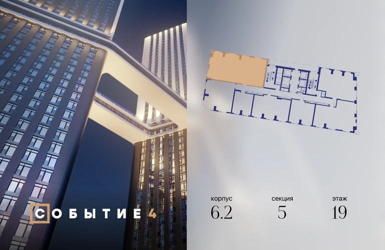 Продаётся 4-комнатная квартира от застройщика: общая площадь 121.90 м², жилая 56.00 м², кухня 23.40 м², 19-й этаж, жилой квартал «Событие-6», корпус 2 (секция 5) Срок сдачи: 1 квартал 2029 года. Позвоните сейчас и забронируйте квартиру! Продуманный до деталей. Созданный для жизни, полной счастливых событий. Парк-квартал СОБЫТИЕ — это жизнь класса премиум в престижном районе на Мосфильмовской улице. Архитектура мирового уровня. Выигрышное расположение на границе природного комплекса «Долина реки Раменки». Все для комфортной жизни и досуга: от детсадов и школ до ресторанов и медцентров. И новая точка притяжения — уже готовый парк «Событие» с пространствами активности для всех возрастов и интересов. Особенности квартала: • «Парящие» мосты и парк под облаками - уникальный дом с самыми завораживающими видами из окон «в пол» • Собственный парк — сразу за порогом! • Архитектурная концепция от известных международных бюро LDA Design и UHA London • Инфраструктура «тапочной доступности»: в кафе, школу, магазин — за пару минут! • Внутренний двор — настоящее продолжение вашего дома: закрытая охраняемая территория без машин, развивающие детские площадки, воркауты-зоны для тех, кто хочет быть в форме, площади для праздников и посиделок с соседями.О застройщике