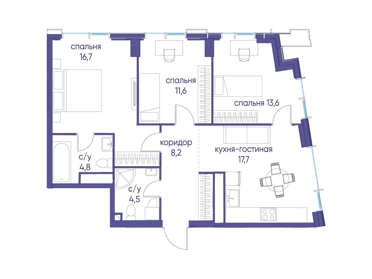 Продаётся 3-комнатная квартира от застройщика: общая площадь 77.10 м², жилая 41.90 м², кухня 17.70 м², 35-й этаж, жилой квартал «Событие-6», корпус 2 (секция 5) Срок сдачи: 1 квартал 2029 года. Позвоните сейчас и забронируйте квартиру! Продуманный до деталей. Созданный для жизни, полной счастливых событий. Парк-квартал СОБЫТИЕ — это жизнь класса премиум в престижном районе на Мосфильмовской улице. Архитектура мирового уровня. Выигрышное расположение на границе природного комплекса «Долина реки Раменки». Все для комфортной жизни и досуга: от детсадов и школ до ресторанов и медцентров. И новая точка притяжения — уже готовый парк «Событие» с пространствами активности для всех возрастов и интересов. Особенности квартала: • «Парящие» мосты и парк под облаками - уникальный дом с самыми завораживающими видами из окон «в пол» • Собственный парк — сразу за порогом! • Архитектурная концепция от известных международных бюро LDA Design и UHA London • Инфраструктура «тапочной доступности»: в кафе, школу, магазин — за пару минут! • Внутренний двор — настоящее продолжение вашего дома: закрытая охраняемая территория без машин, развивающие детские площадки, воркауты-зоны для тех, кто хочет быть в форме, площади для праздников и посиделок с соседями.О застройщике