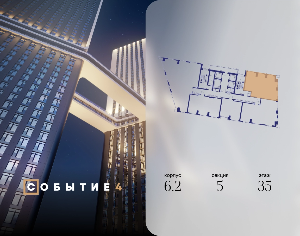 Продаётся 3-комнатная квартира от застройщика: общая площадь 77.10 м², жилая 41.90 м², кухня 17.70 м², 35-й этаж, жилой квартал «Событие-6», корпус 2 (секция 5) Срок сдачи: 1 квартал 2029 года. Позвоните сейчас и забронируйте квартиру! Продуманный до деталей. Созданный для жизни, полной счастливых событий. Парк-квартал СОБЫТИЕ — это жизнь класса премиум в престижном районе на Мосфильмовской улице. Архитектура мирового уровня. Выигрышное расположение на границе природного комплекса «Долина реки Раменки». Все для комфортной жизни и досуга: от детсадов и школ до ресторанов и медцентров. И новая точка притяжения — уже готовый парк «Событие» с пространствами активности для всех возрастов и интересов. Особенности квартала: • «Парящие» мосты и парк под облаками - уникальный дом с самыми завораживающими видами из окон «в пол» • Собственный парк — сразу за порогом! • Архитектурная концепция от известных международных бюро LDA Design и UHA London • Инфраструктура «тапочной доступности»: в кафе, школу, магазин — за пару минут! • Внутренний двор — настоящее продолжение вашего дома: закрытая охраняемая территория без машин, развивающие детские площадки, воркауты-зоны для тех, кто хочет быть в форме, площади для праздников и посиделок с соседями.О застройщике
