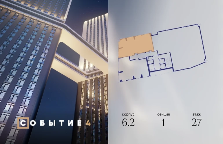 Продаётся 3-комнатная квартира от застройщика: общая площадь 97.50 м², жилая 46.50 м², кухня 27.50 м², 27-й этаж, жилой квартал «Событие-6», корпус 2 (секция 1) Срок сдачи: 1 квартал 2029 года. Позвоните сейчас и забронируйте квартиру! Продуманный до деталей. Созданный для жизни, полной счастливых событий. Парк-квартал СОБЫТИЕ — это жизнь класса премиум в престижном районе на Мосфильмовской улице. Архитектура мирового уровня. Выигрышное расположение на границе природного комплекса «Долина реки Раменки». Все для комфортной жизни и досуга: от детсадов и школ до ресторанов и медцентров. И новая точка притяжения — уже готовый парк «Событие» с пространствами активности для всех возрастов и интересов. Особенности квартала: • «Парящие» мосты и парк под облаками - уникальный дом с самыми завораживающими видами из окон «в пол» • Собственный парк — сразу за порогом! • Архитектурная концепция от известных международных бюро LDA Design и UHA London • Инфраструктура «тапочной доступности»: в кафе, школу, магазин — за пару минут! • Внутренний двор — настоящее продолжение вашего дома: закрытая охраняемая территория без машин, развивающие детские площадки, воркауты-зоны для тех, кто хочет быть в форме, площади для праздников и посиделок с соседями.О застройщике
