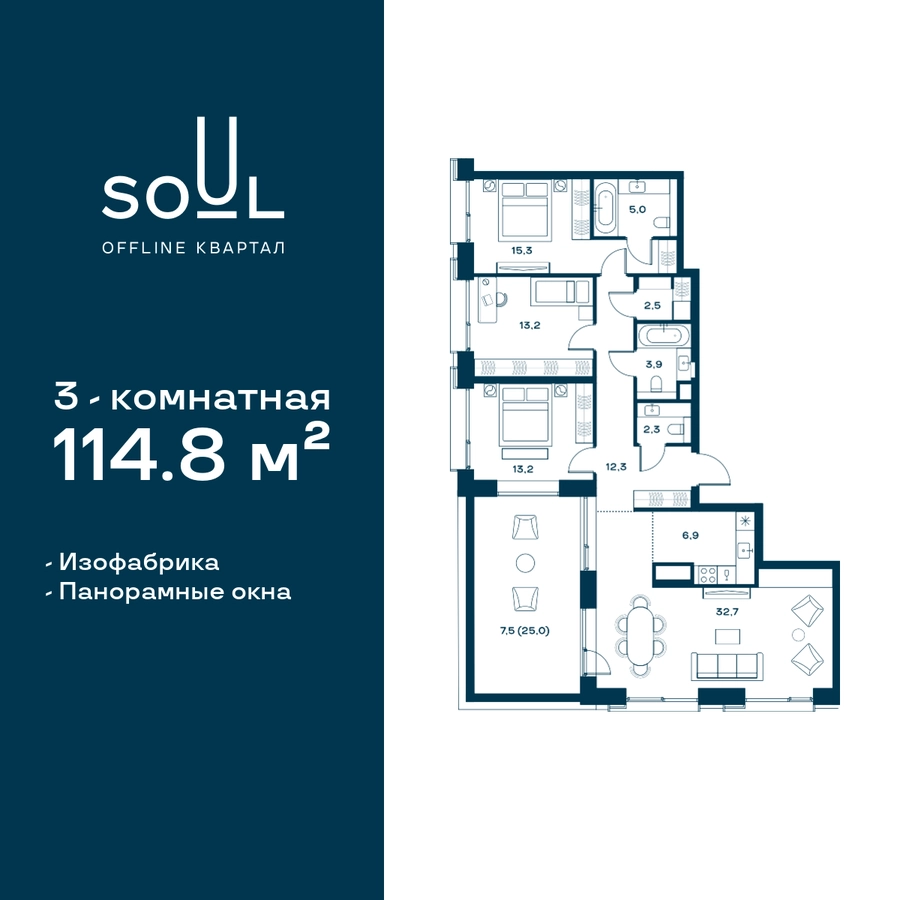 Цены указаны с условием 100% оплаты и стандартной ипотеки. Прямая продажа от застройщика! Продается 3-к. квартира квартира номер 171 общей площадью 114.8 кв.м. на 20-м этаже 25 этажного дома, Корпус 3. С отделкой White Box Max. Проект бизнес-класса SOUL от девелопера FORMA. До метро Сокол 10 мин пешком. Архитектура от британского бюро SimpsonHaugh. Благоустройство дворов — Gillespies. Центральная площадь с фонтанами и местами для отдыха. Оборудованные детские и спортивные площадки. В центре проекта объект культурного наследия — общественное пространство Изофабрика, построенная в 30-х годах по проекту архитектора Георгия Гольца. Здесь будут располагаться мастерские для взрослых и детей, образовательный центр, рестораны и кафе. Квартиры с панорамными окнами, французскими балконами, мастер-спальнями и гардеробными. Высота потолков от 3,1 м. На последнем этаже 3,5 м. В проекте 2 детских сада на 100 и 200 малышей. Фит-рум, коворкинг, дизайнерские лобби, подземный паркинг и келлеры.О застройщике