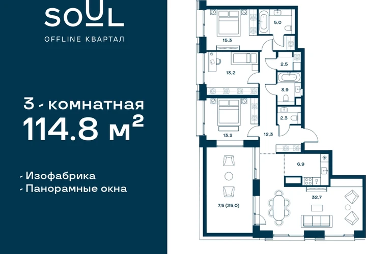 Цены указаны с условием 100% оплаты и стандартной ипотеки. Прямая продажа от застройщика! Продается 3-к. квартира квартира номер 171 общей площадью 114.8 кв.м. на 20-м этаже 25 этажного дома, Корпус 3. С отделкой White Box Max. Проект бизнес-класса SOUL от девелопера FORMA. До метро Сокол 10 мин пешком. Архитектура от британского бюро SimpsonHaugh. Благоустройство дворов — Gillespies. Центральная площадь с фонтанами и местами для отдыха. Оборудованные детские и спортивные площадки. В центре проекта объект культурного наследия — общественное пространство Изофабрика, построенная в 30-х годах по проекту архитектора Георгия Гольца. Здесь будут располагаться мастерские для взрослых и детей, образовательный центр, рестораны и кафе. Квартиры с панорамными окнами, французскими балконами, мастер-спальнями и гардеробными. Высота потолков от 3,1 м. На последнем этаже 3,5 м. В проекте 2 детских сада на 100 и 200 малышей. Фит-рум, коворкинг, дизайнерские лобби, подземный паркинг и келлеры.О застройщике